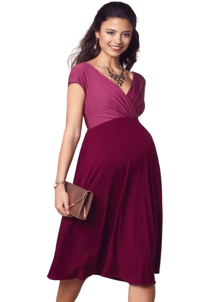 Seasonally on trend in rich red and pink in the softest premium jersey – our Alessandra maternity party dress is a great wardrobe staple for the festivities.