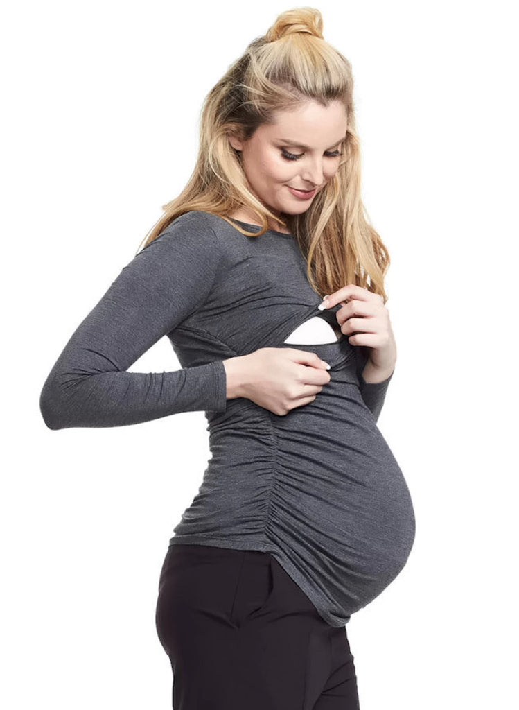 Perfect for layering with your maternity wardrobe pieces all year round, during pregnancy and nursing. The Honor Long Sleeve Feeding Top will have you feeling comfortable yet stylish while making breastfeeding easy.