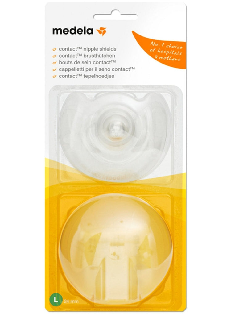 If you suffer from pain and discomfort whilst breastfeeding, Medela's Contact Nipple Shields will provide you with the perfect solution. Whilst enabling you to breastfeed your baby by protecting the nipple area during feeding, they also provide an easy latch-on support for your little one. The Nipple Shields are designed to guarantee maximum contact with your skin and are available in 3 different sizes, complete with a convenient storage box. Alleviate pain and discomfort instantly with the protective Contact Nipple Shields. Features: