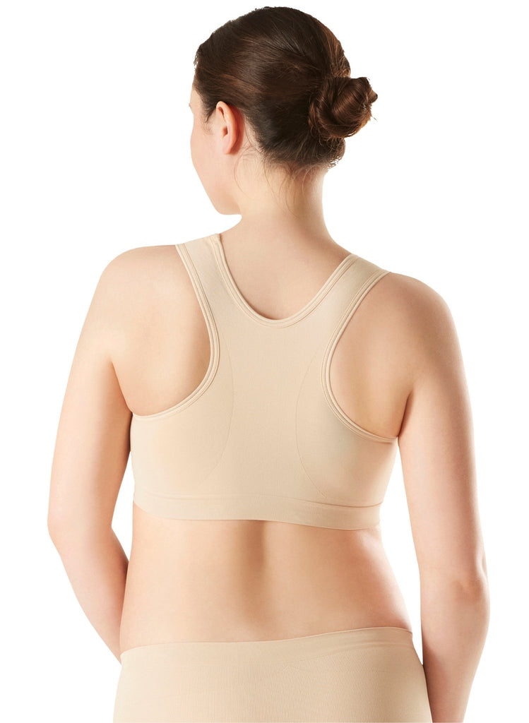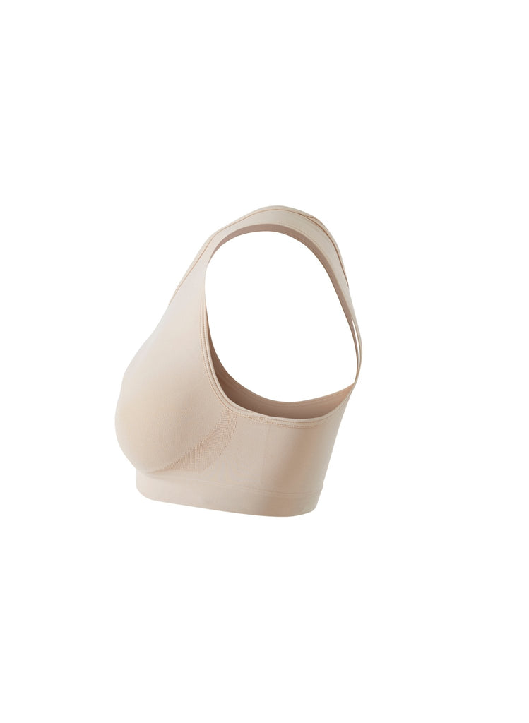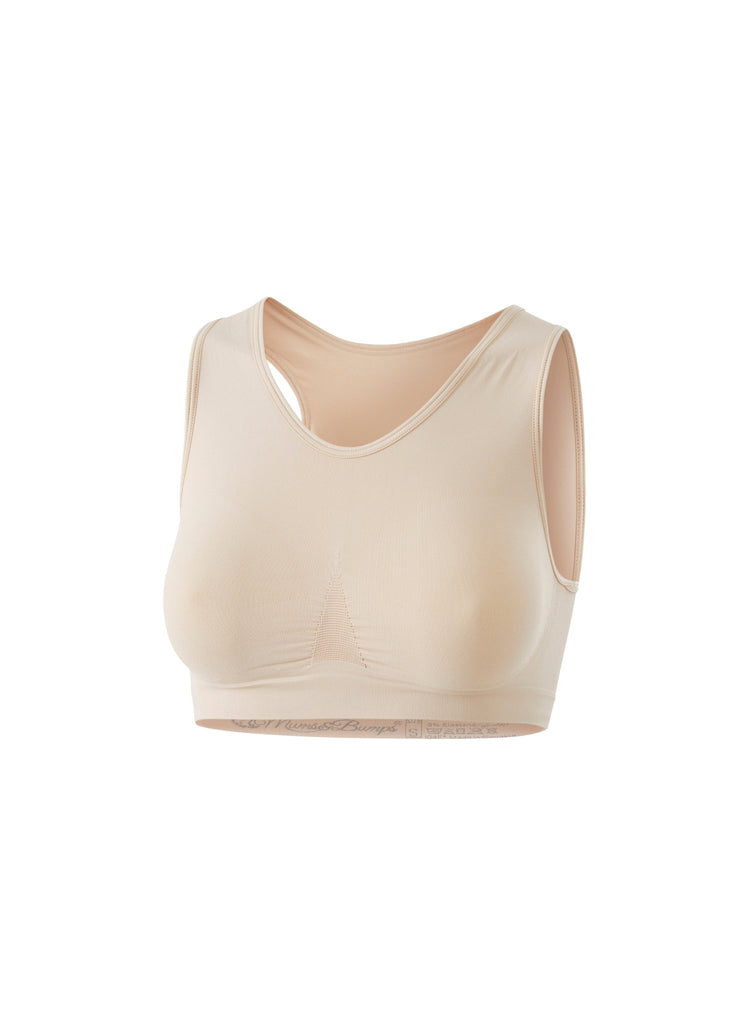 Your breasts develop during your pregnancy. The Pregnancy & Sleep Bra has been designed to follow you. This seamless bra is comfortable to wear, ensures optimum support throughout your pregnancy and no seams to irritate the skin. The tight knit under the bras substitutes under wire resulting in extra support and lifting of the breast. Wider straps for greater comfort and increased support.
