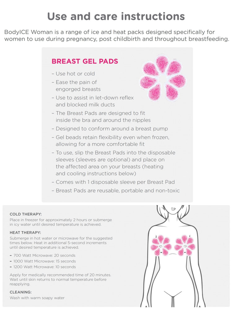 Don’t despair ladies, each BodyICE Woman breast pad has been designed to fit comfortably inside your bra and around your nipples to provide relief from soreness associated with breast surgery, breast feeding, blocked milk ducts and engorgement.