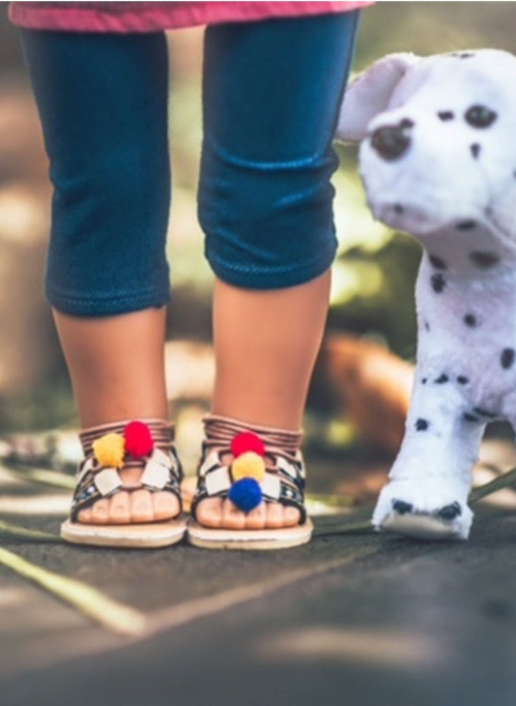 These Sophia Gladiator Sandals are sure to be a hit with your favorite 18" doll. A zipper runs down the entire back of the sandal making these easy to get on your doll.