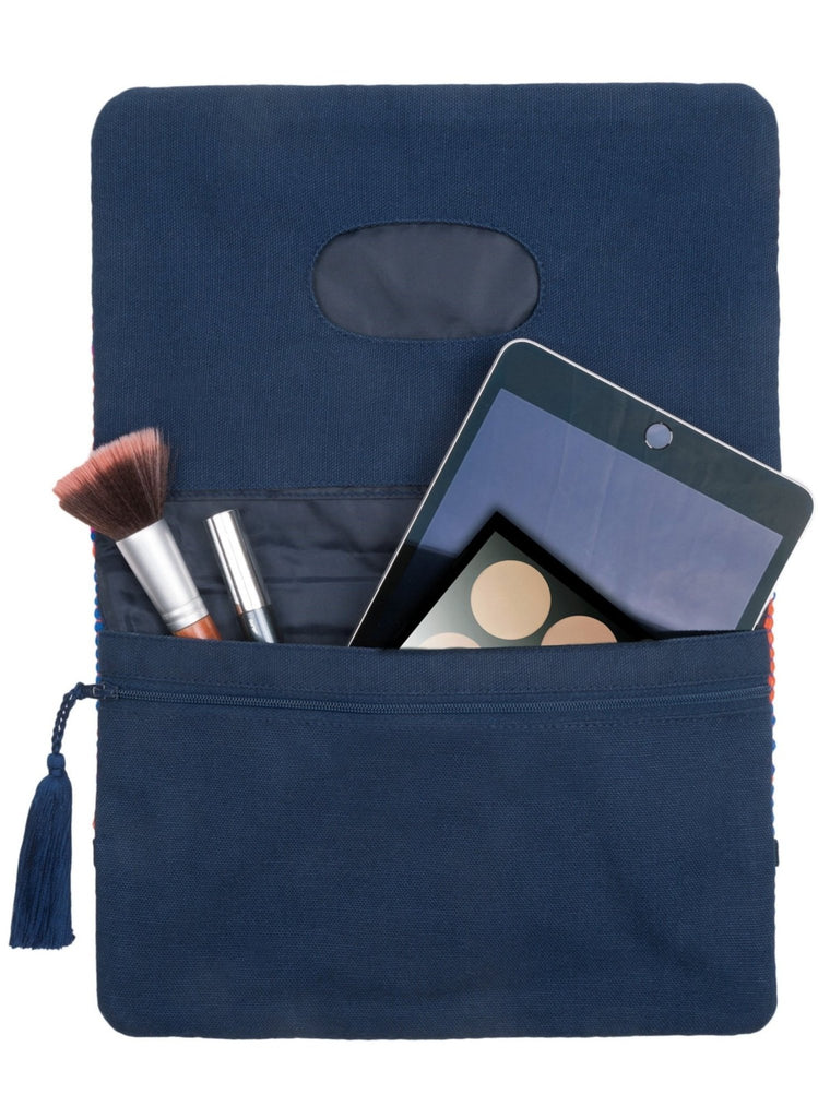 Print Parade diaper clutch is the ideal companion to the everyday life of a modern mum. The navy blue elastic band-allowing for easy access creating a unique and modern look. Inside the diaper clutch there is a zippered pocket for secure storage of important items as well as plenty of storage for nappies, wipes and bottles. The tissue compartment also allows for easy access to wet wipes. This perfect combination of style and practicality of mara meas diaper clutch street market is a must have for busy mums this season.
