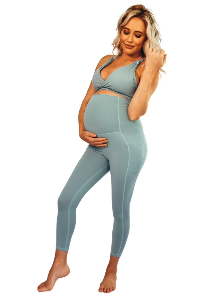 High waisted Maternity leggings, supportive and comfortable with a side pocket. Comes with a matching, support maternity nursing bra with easy accessibly clips. Adjustable straps and removable pads.