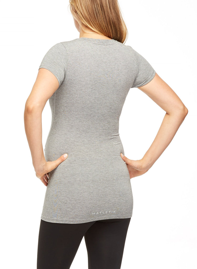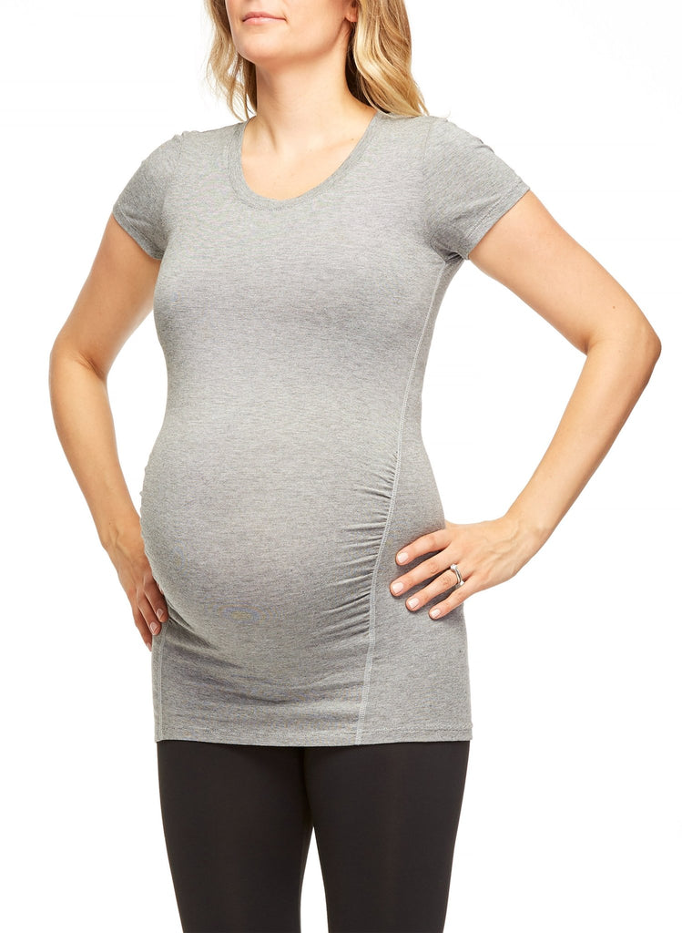 This round-neck t-shirt is designed to adapt perfectly to your changing body providing total comfort and gentle support. The feminine rushed side seams allow the material to grow with your belly without loosing any length. The ultra soft and stretch fabric allows for liberty of movements and the flattering lines makes you feel at your best, an essential to engage in your favorite sport or everyday activity.