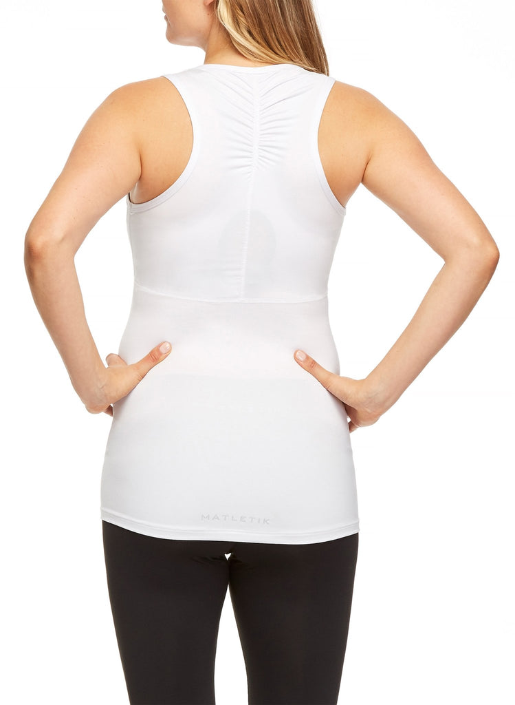This round-neck racerback tank is designed to adapt perfectly to your changing body providing total comfort and gentle support. The feminine rushed side seams allow the material to grow with your belly without loosing any length. The soft stretch fabric allows for liberty of movements and the flattering lines makes it an essential to engage in your favourite sports or activities.