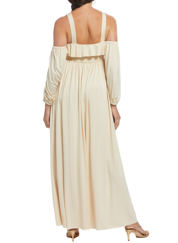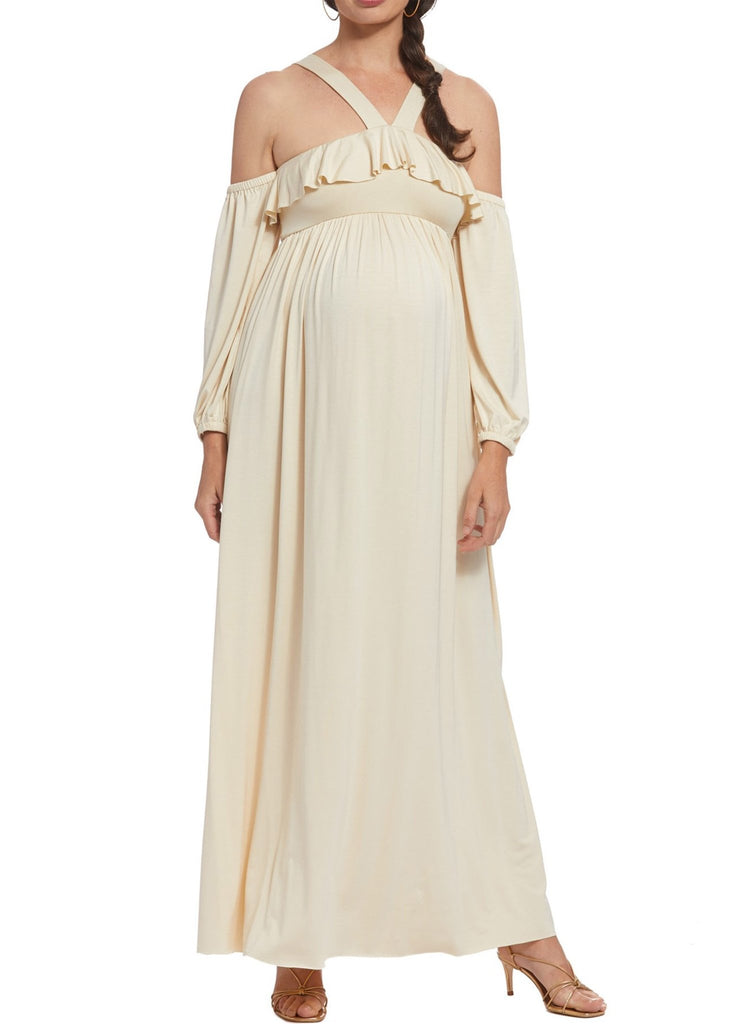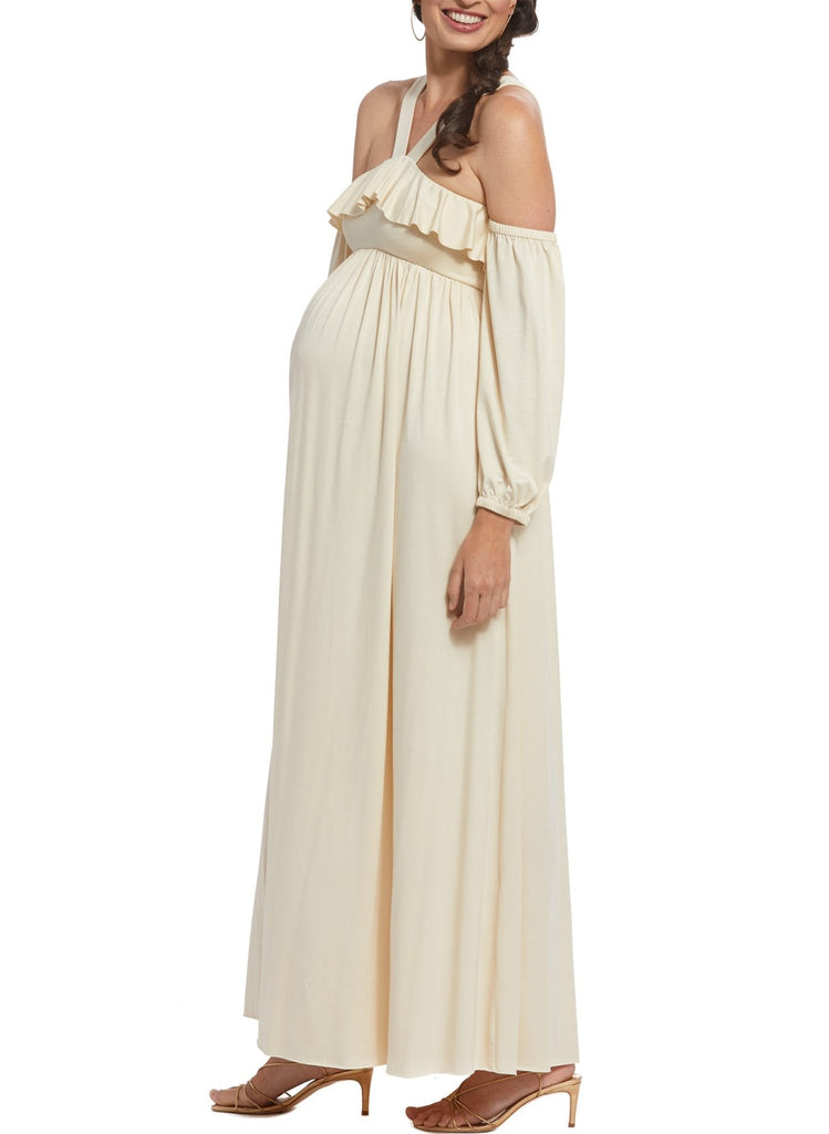 Ethereal beauty the Inez maternity dress features unique strap detail, ruffle detail at the chest and elasticized at the wrists and beneath the bust. Suitable during and after pregnancy.Ethereal beauty. the Inez maternity dress features unique strap detail, ruffle detail at the chest and elasticized at the wrists and beneath the bust. Suitable during and after pregnancy.