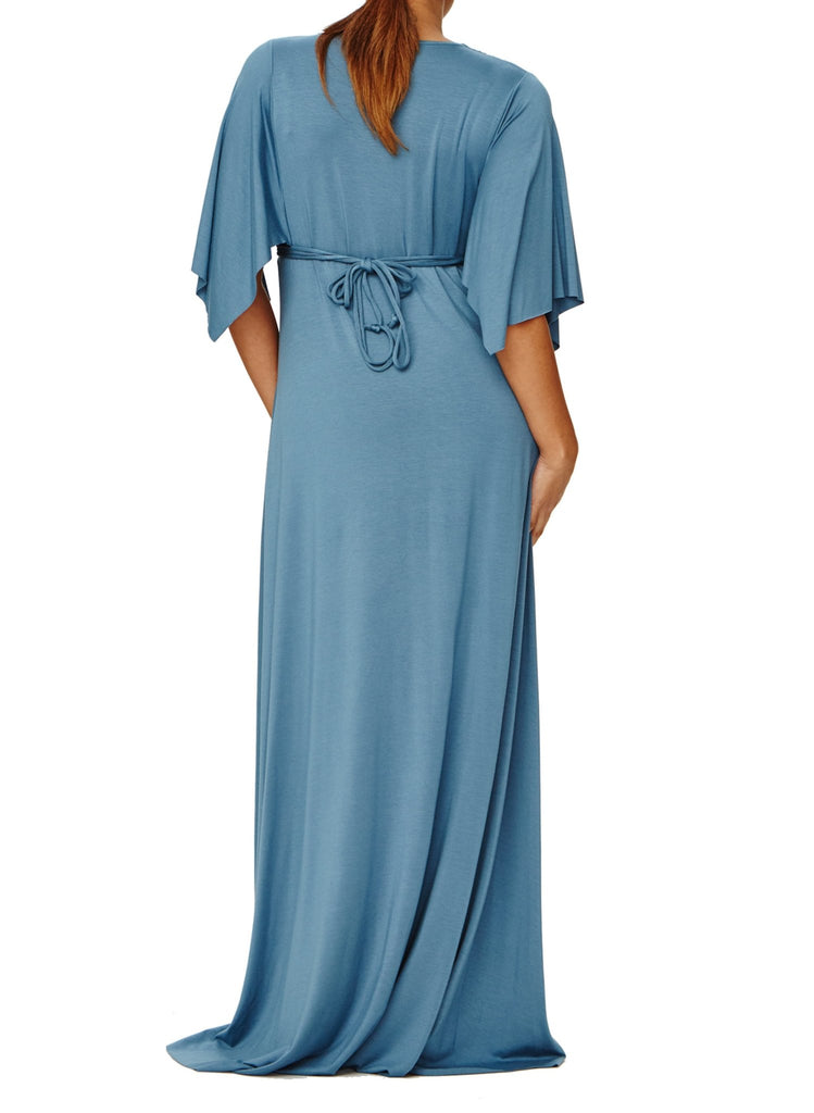 This kimono sleeve maxi dress is our All Time Best Seller! Great for all shapes and sizes. Our classic caftan styles are maternity appropriate and are available in other color and print options.