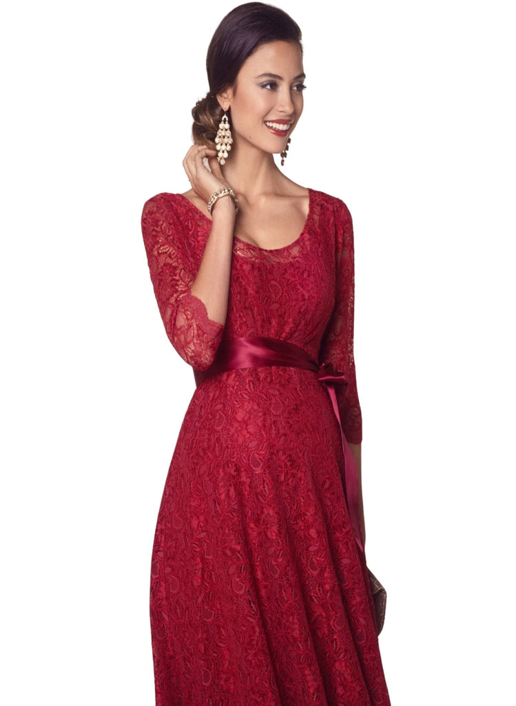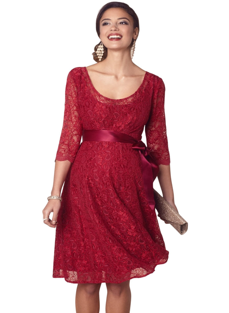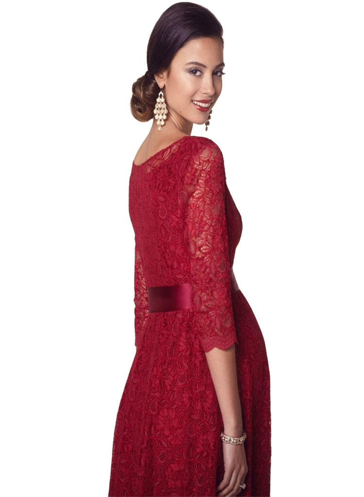 Our best-selling Freya lace maternity party dress has all the credentials of the perfect party gown – corded lace lined with premium jersey, a gently scooped neckline and flattering knee length skirt plus a fabulous new Scarlet colourway, just perfect for the festive season.