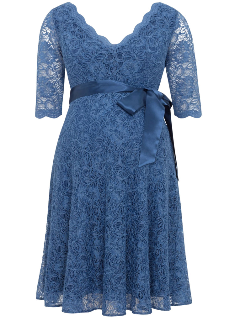 A refreshingly colourful change from classic black, our new Riviera Blue Noelle dress has a hint of stretch for the perfect fit. A flattering little dress whether it’s a party, cocktails or a wedding invite you need a great outfit for. Premium corded lace with a soft jersey lining ensures maximum comfort and a flexible fit as your curves evolve. The front and back of the dress has a sultry V neck, which combined with the 1950s style skirt gives an air of vintage glam to see you through every occasion.
