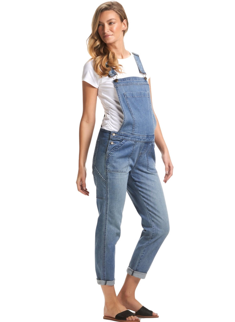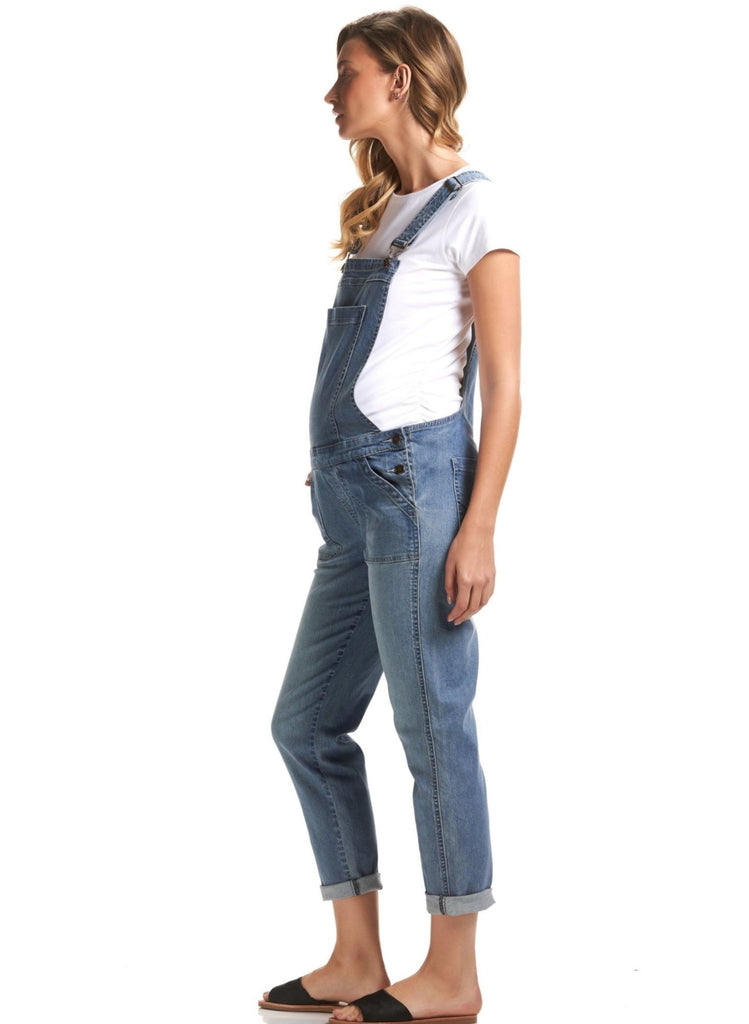 Our Alice Maternity Denim Overalls have been carefully designed to fit you comfortably this pregnancy while still looking modern and stylish in them post-pregnancy. No more daggy, ill-fitting dungarees during pregnancy!  Featuring a classic 5 pocket overall design and a side panel that includes an extra row of buttons so it can adjust out during pregnancy and button back in post-pregnancy. They are crafted in cotton denim with just 2% spandex, which allows just enough stretch without compromising on the denim quality.