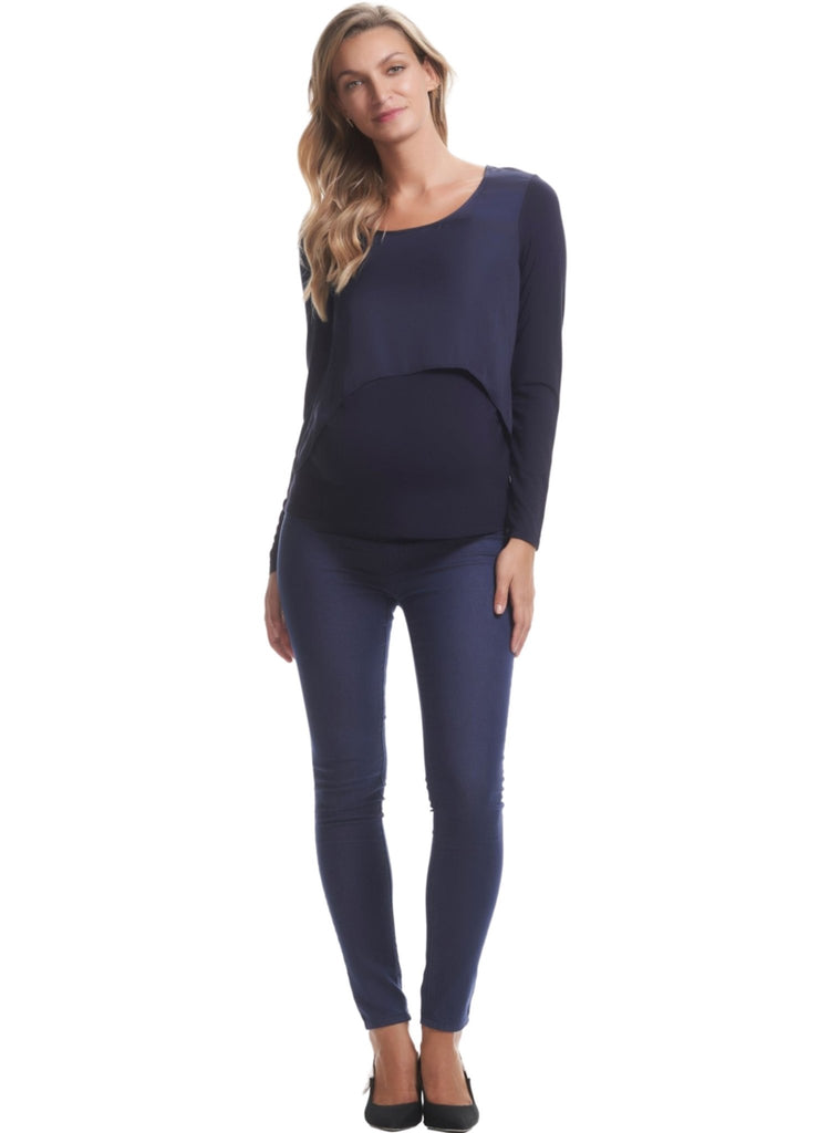 The Coco Super Stretch Maternity Denim is our answer to basic, cost-effective, maternity jeans! This simple underbelly design is made in a new super stretch denim fabrication that will feel like jeggings but still look high quality. They feature a low elastic waistband and have a skinny leg fit so will be nice and snug while having enough stretch to grow with you during pregnancy.