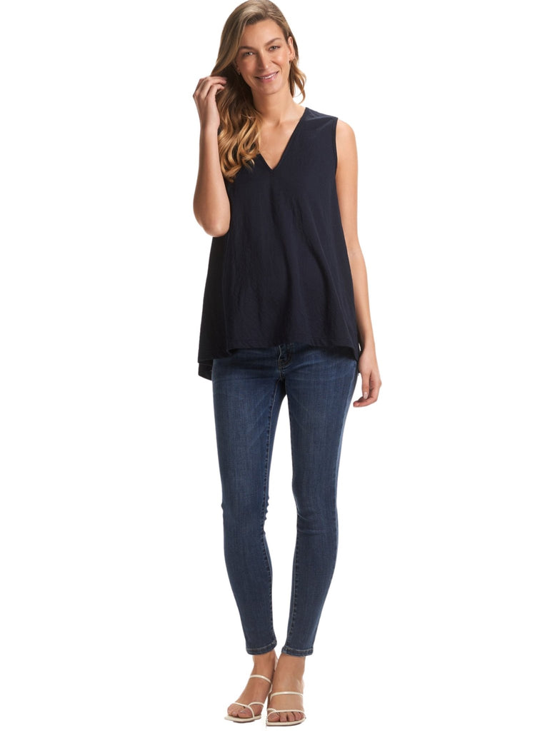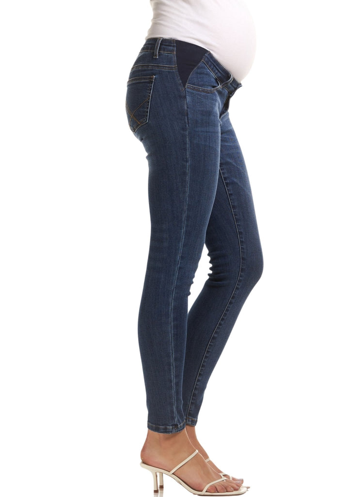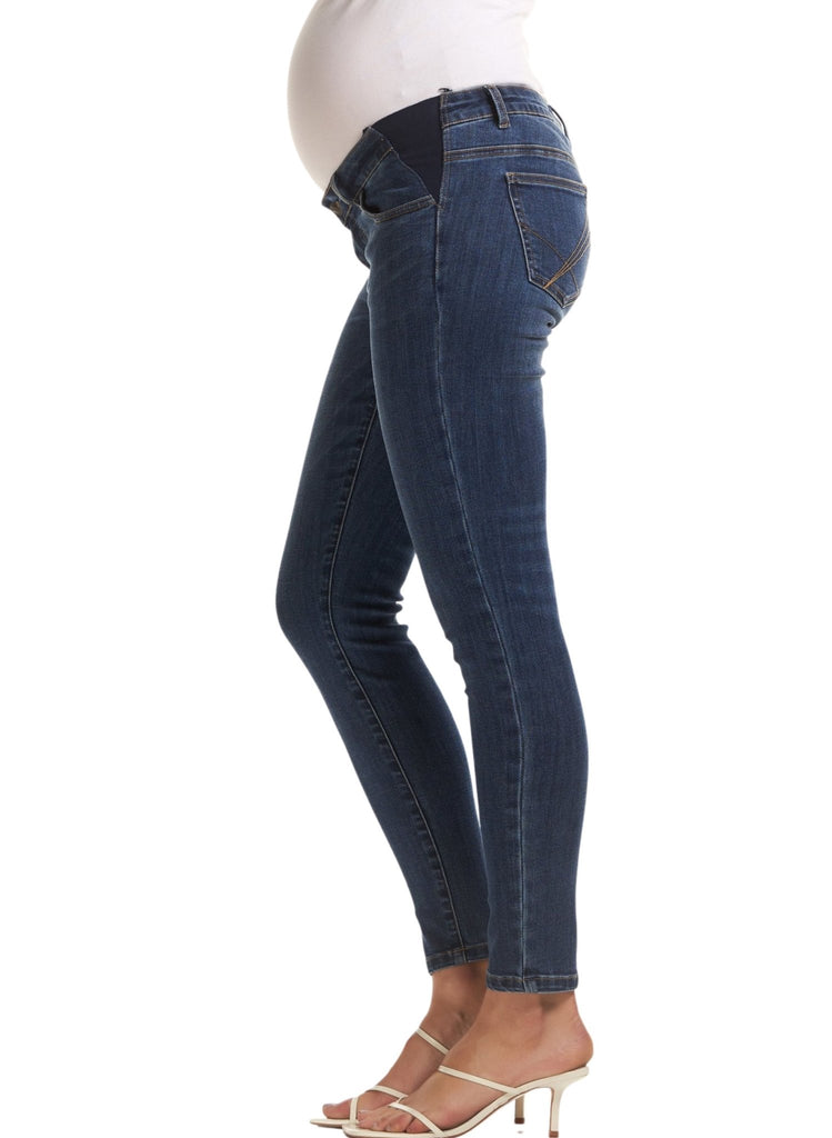 The Esme Skinny Crop Maternity Denim is a must for every mum to be's wardrobe! Crafted from a soft, stretch cotton fabrication, the jeans feature a 5 pocket design with side elastic inserts to accomadate your growing bump. With a skinny silhouette and cropped to the ankle, they look great with a heel for going out and just as chic with our linen tee and your sneakers