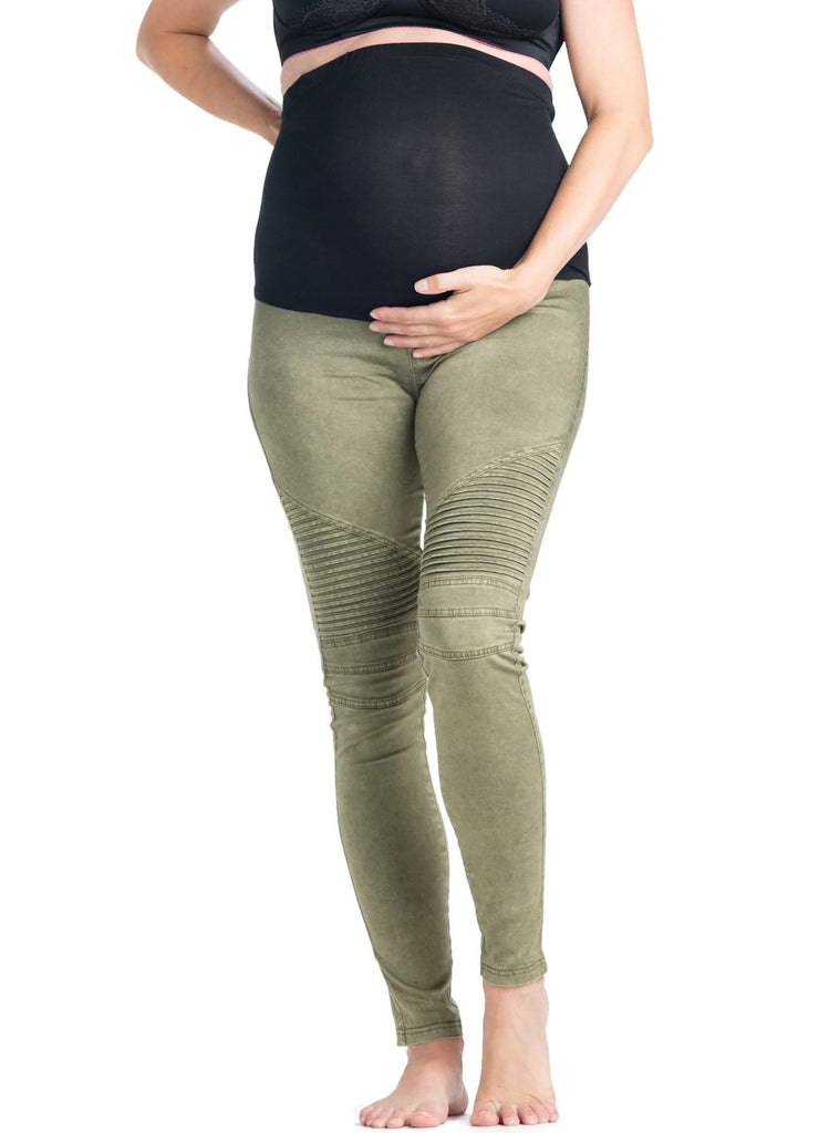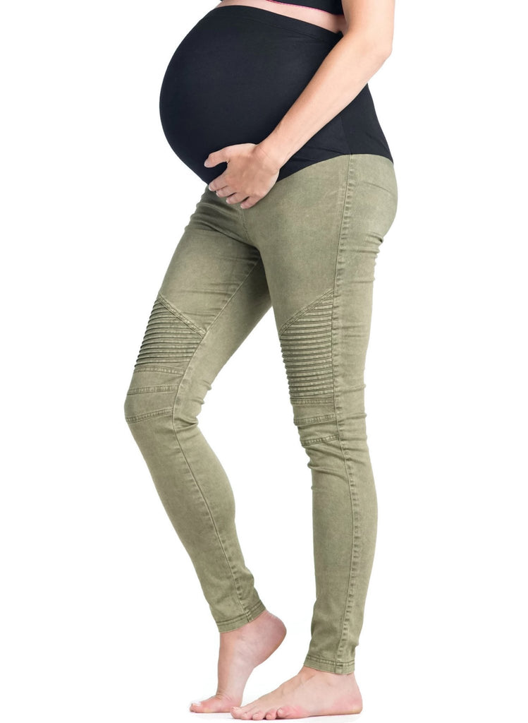 Everyone will be green with envy you rock this biker inspired Moto Maternity Leggings. Plus you'll instantly look like a badass preggo babe. They are super comfy too with an adjustable waist and ribbed stretch cotton over the bump panels. Your ultimate go-to fashion maternity leggings that you can easily dress up or down with a tee or your favorite top.