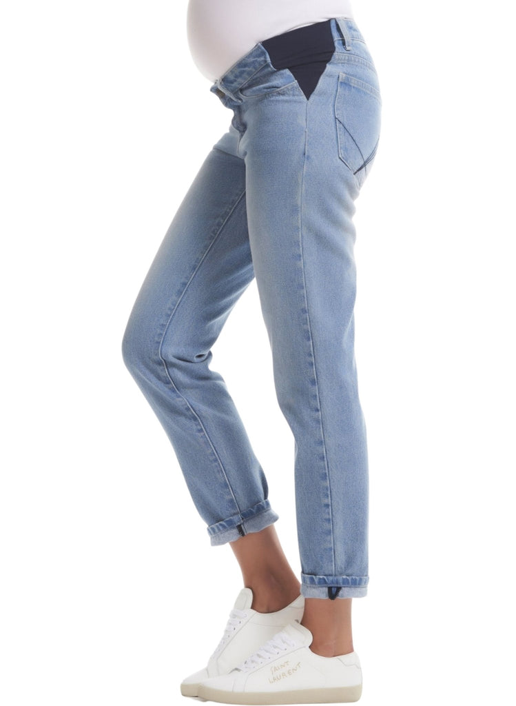 If you've been missing your Levi's this pregnancy, these are the jeans for you! Our Loni Rigid Denim are made in premium non-stretch denim with a classic light wash, making it a great wardrobe staple for the on-trend mum-to-be. Featuring a straight leg cut that is tapered to the ankle. Constructed with an 'under-the-bump' low waist that has elastic inserts at the sides to allow it to grow with you during pregnancy. Roll the hem and pair with sneakers and a classic white tee or style for work with a shirt and blazer paired with mules.