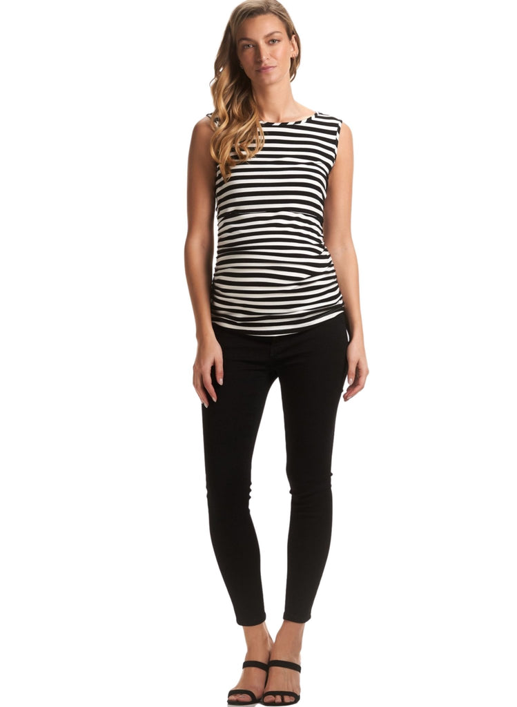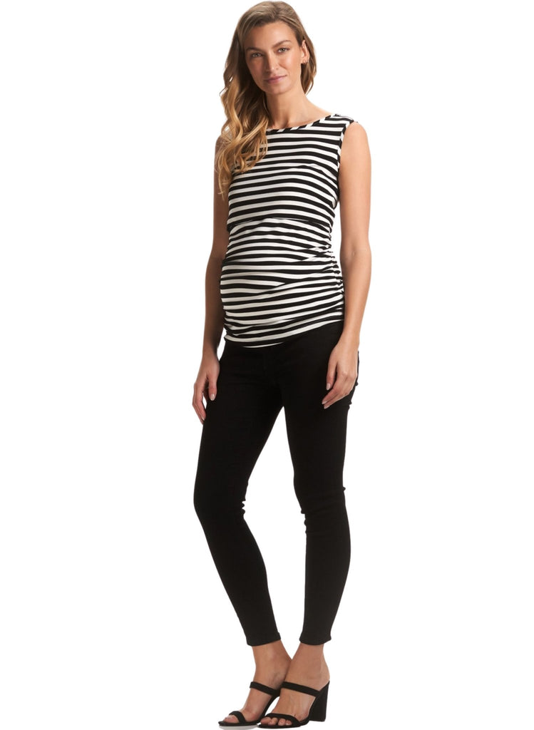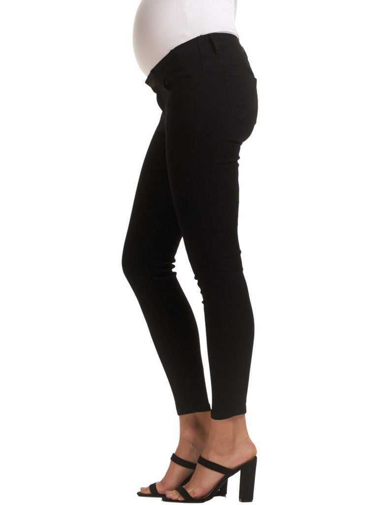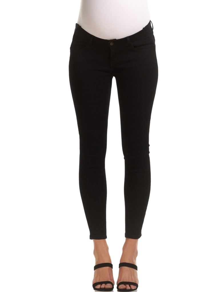 Our newest denim addition, The Margot Maternity Denim is the perfect black jean to add to your denim collection. With a sleek skinny leg and slightly cropped to the ankle, these jeans feature a 5 pocket design and low button fly front. They have stretchy elastic side inserts that grow with you throughout your pregnancy. Pair them with a classic tee or knit for an everyday look, or a pair of heels if you're heading out.