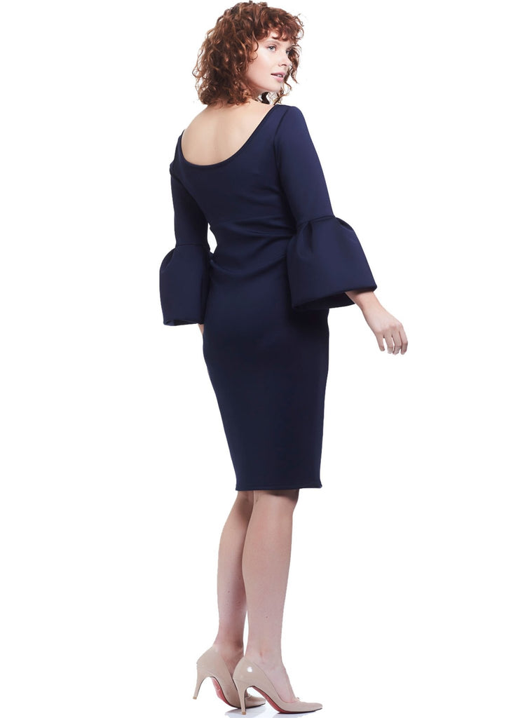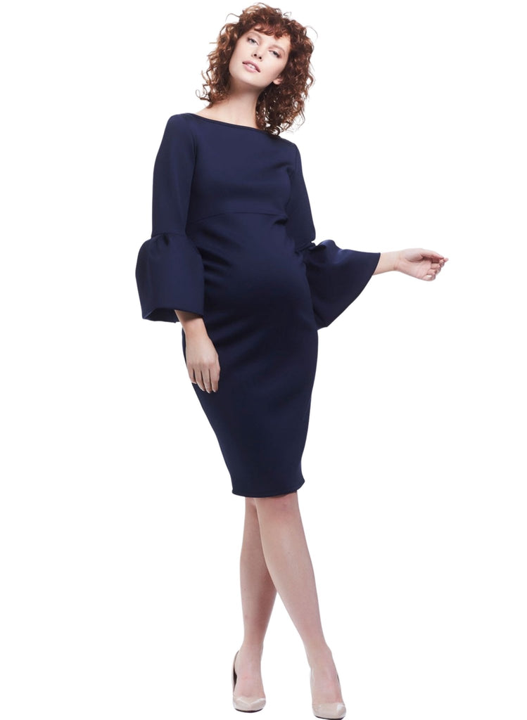 The epitome of event dressing, the Myra ruffle sleeve dress is perfect for your next special occasion! Featuring a fitted silhouette that will hug your bump with ruching on the side and stretch fabrication to ensure you have room to grow. Details such as feminine ruffle cuffs and a low scoop back will make you feel elegant and modern.