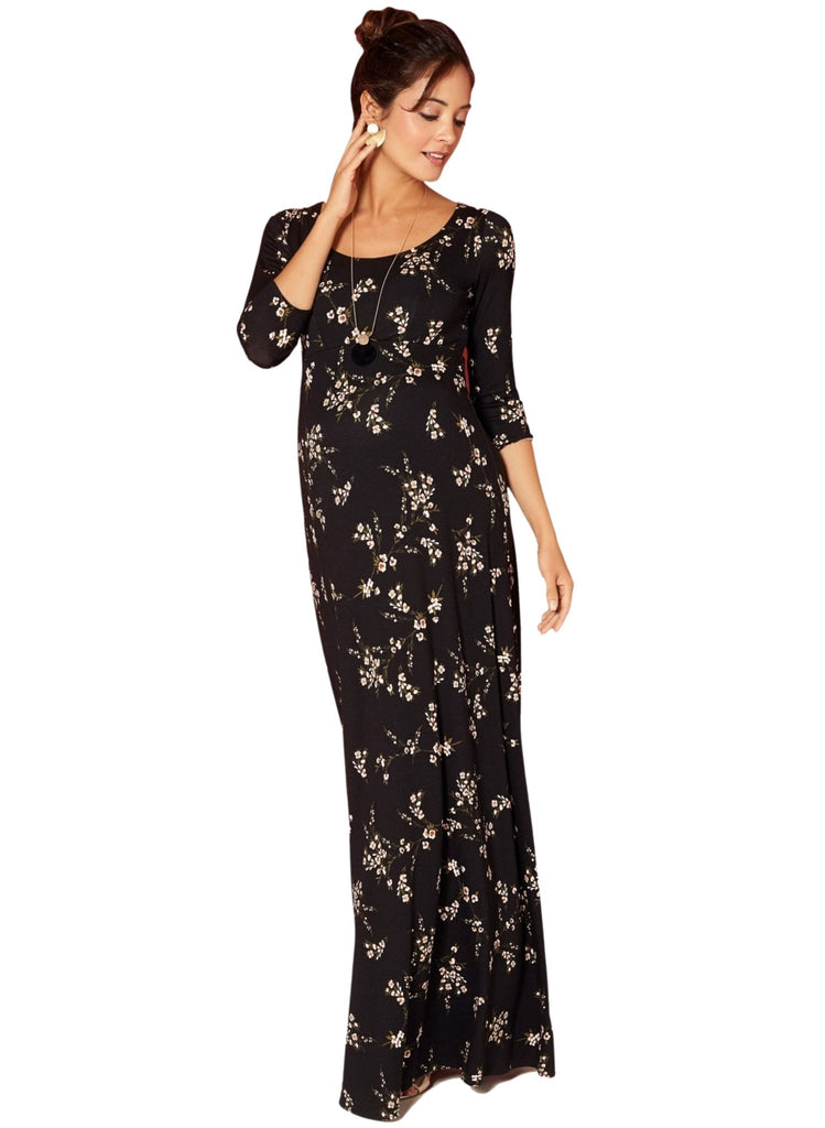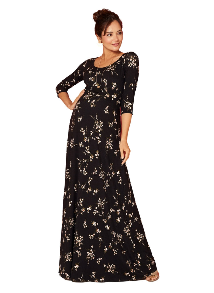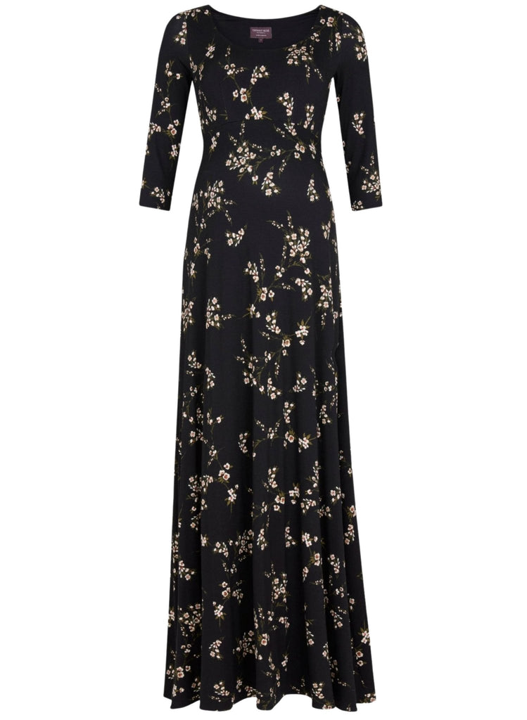 Endlessly versatile and so flattering to wear, the Samantha floral maxi dress has a slim fit bodice with three-quarter length sleeves for added arm coverage. The striking Night Blossom print is set against a jet-black backdrop, offering an edgier take on florals. Cut from premium French jersey with a subtle sheen for the softest feel and a beautiful drape.