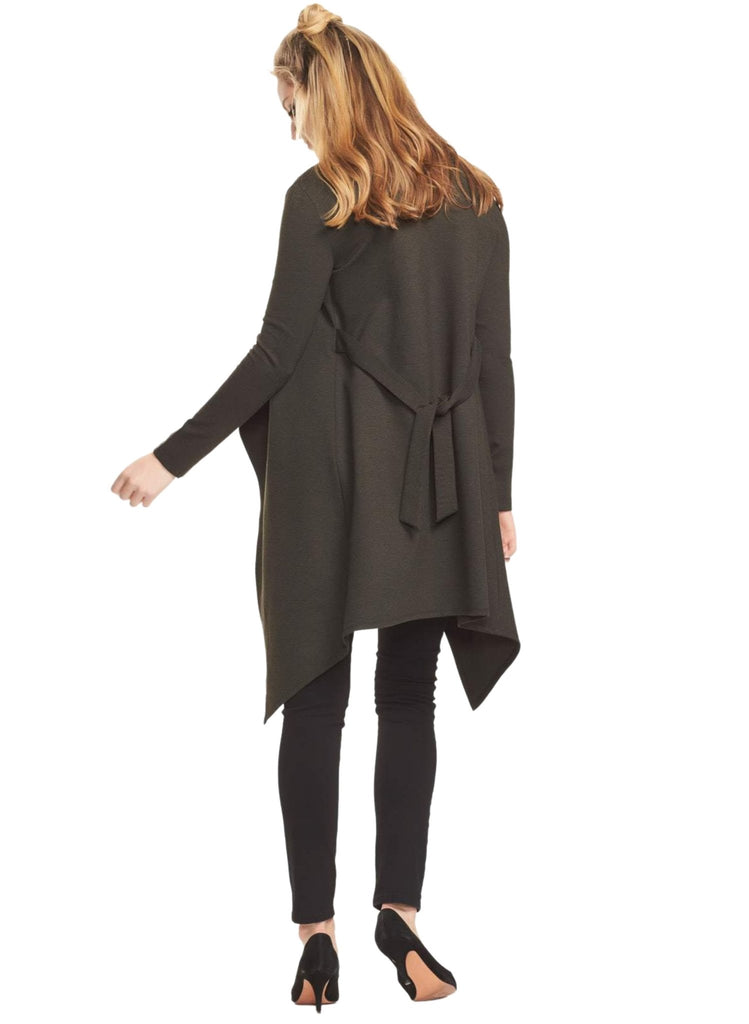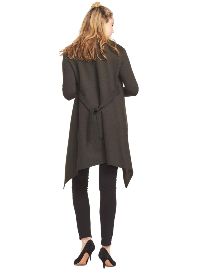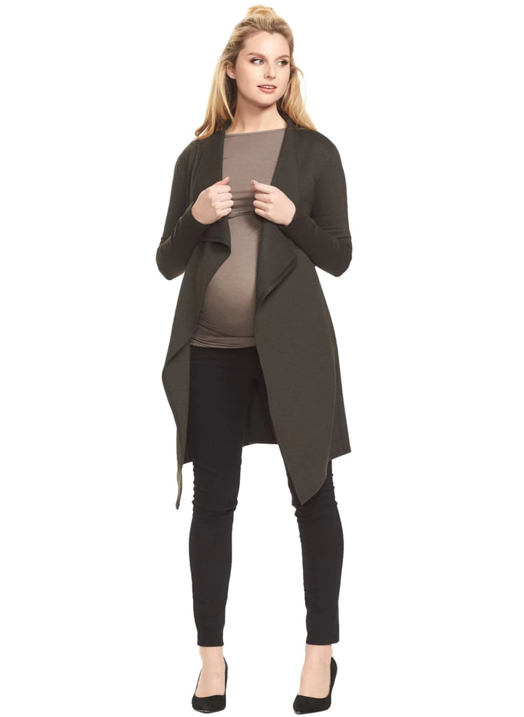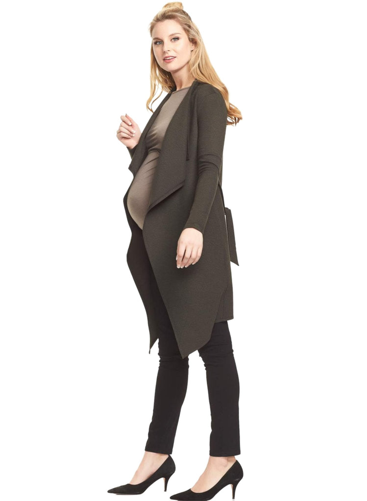 The Bonnie Coatigan will be a classic layering piece for your winter pregnancy wardrobe and beyond. With a waterfall front that finishes just below the knees and a belt that can be used to close the jacket or worn casually tied to the back, the Bonnie Coatigan will polish off almost any maternity outfit.