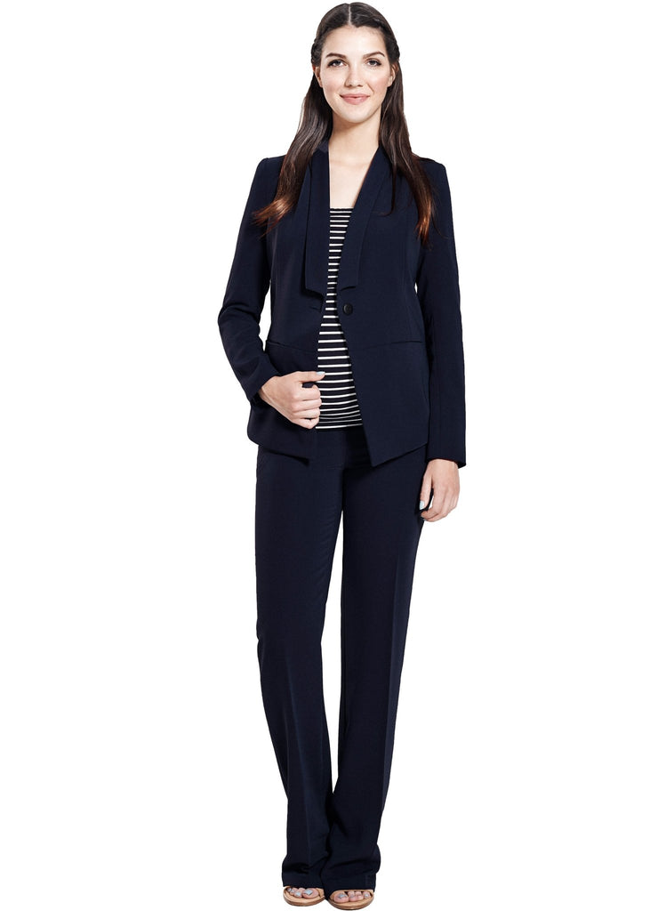 Waisted jacket with lapel a collar, closed with a button at the front in black.