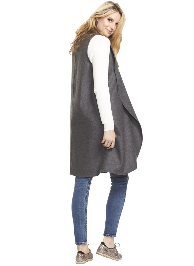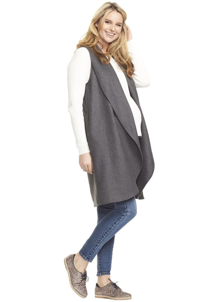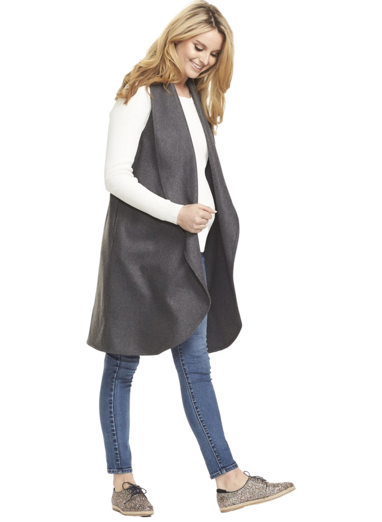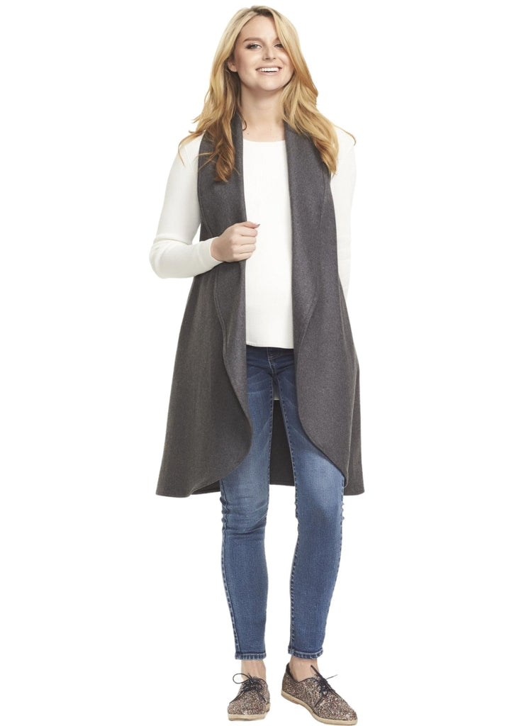 The Frost Wool Maternity Vest is a classic for your winter wardrobe during and beyond pregnancy. Sitting below the knees with side pockets this open style vest is great for layering.