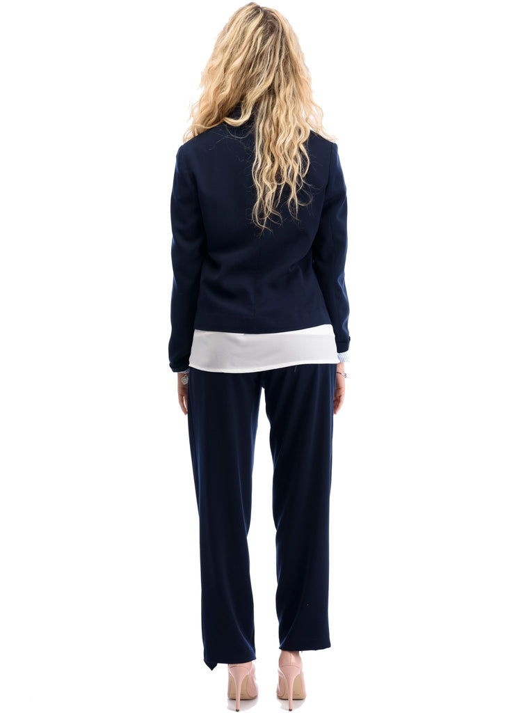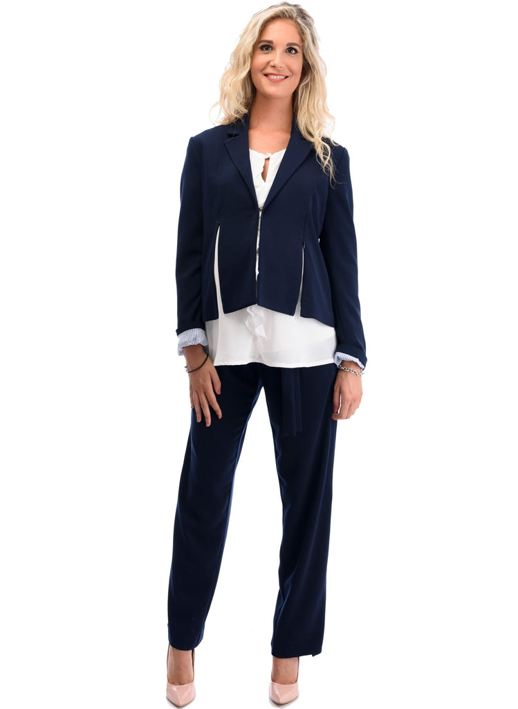 Tuxedo jacket with zipper at side to regulate belly growing, and this one will stay with you longer after pregnancy! wear it over a simple shirt for a refreshing office look.