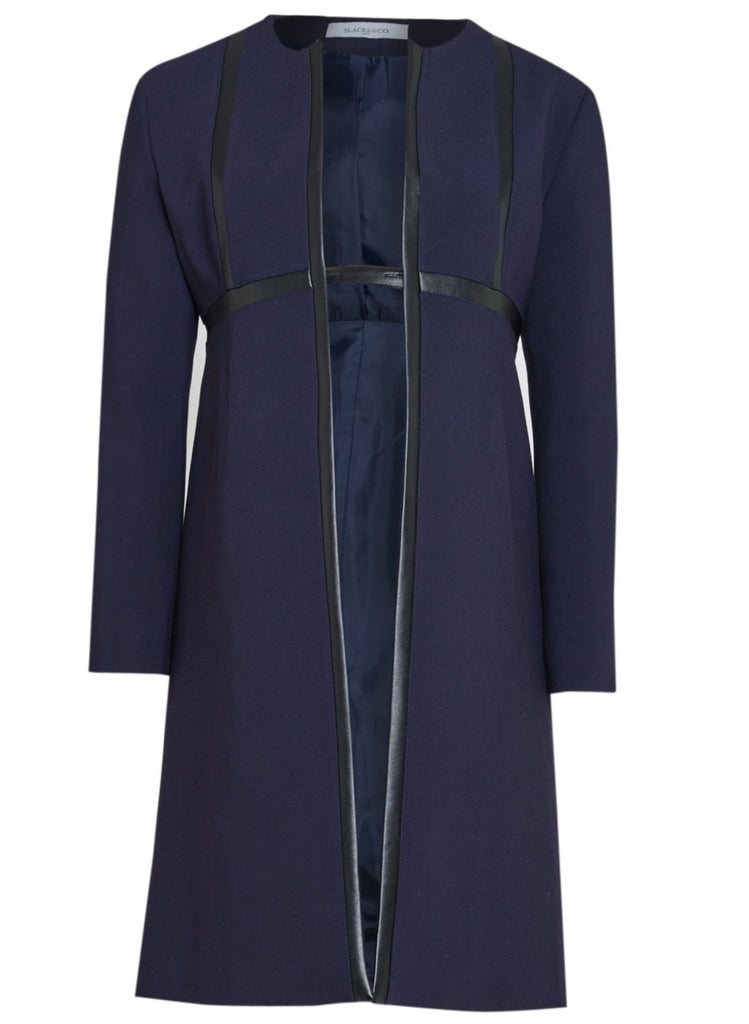 The Tara dress coat is the go-to item to create a clean, dressed up look. The faux leather trims give it a contemporary twist. Wear yours over slim pants or a dress with heels to create a complete outfit.