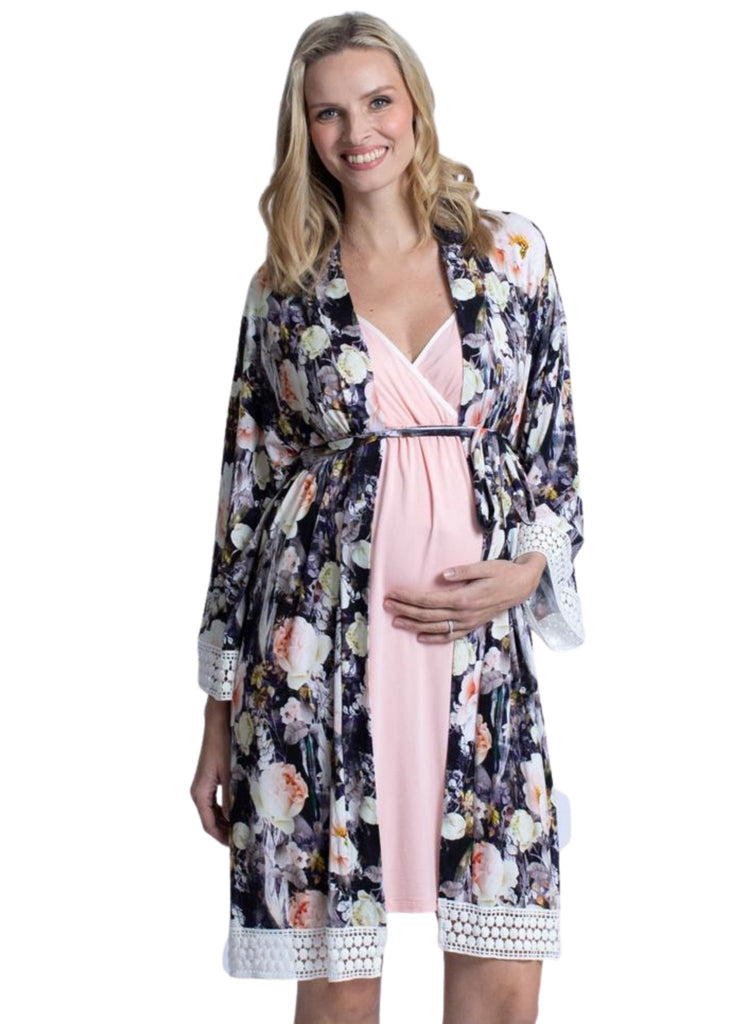 Our Angel Maternity Birthing and Nursing Robes are perfect to snuggle up in before and after your delivery! Gorgeous design with lace trim, made with a super soft material. The perfect weight to keep you comfy and cozy to brave the freezing temps at the hospital! Comes with an easy opening sleeveless dress + baby blanket pouch Great for breastfeeding and skin to skin time at the hospital and home with your newborn. Please note that the robe only comes in size S-XL Size S-M will get size S Size L-XL will get size XL