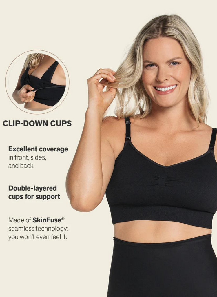 • Clip-down cups with comfy internal structures allow you to feed your baby while the bra stays in place.