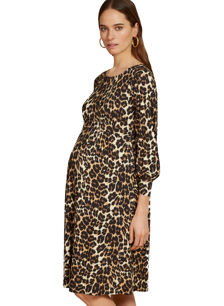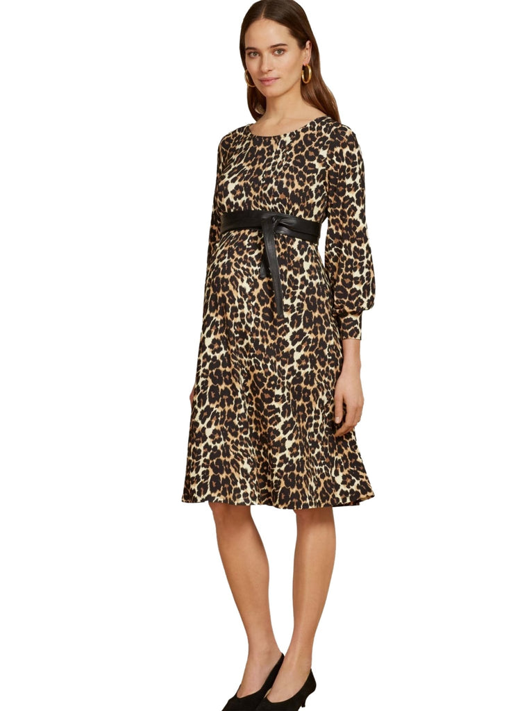 Introduce the most coveted print into your wardrobe, and let it transform your maternity style. Expertly designed to fit and flatter throughout your pregnancy, with a gathered band under the bust and flowing shape. Fall in love with leopard print and the limitless ways you can style it. It’s perfect to dress up for work or to wear on casual occasions with a jacket. Belt is for styling only and is sold separately.
