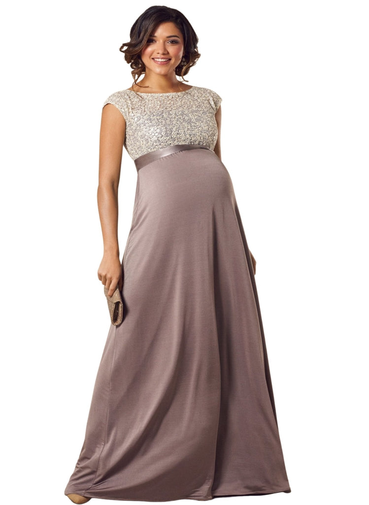Subtle and elegant in divine creamy taupe tones, our sequinned full length gown is glittering with beautiful details. The embroidered bodice with sequins shimmers elegantly under the light while the taupe rose full flowing skirt is light and fluid. Finished with flattering capped sleeves and a sheer neckline for that extra added special magic.
