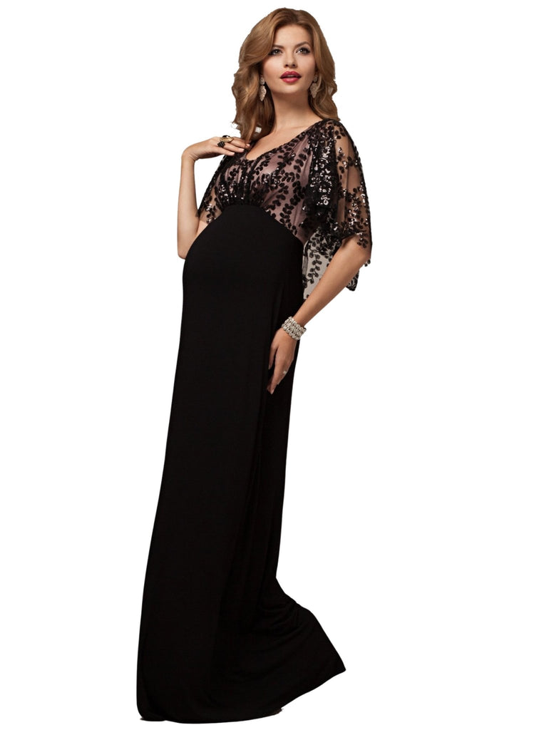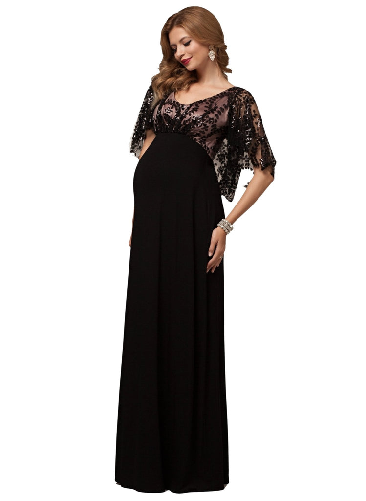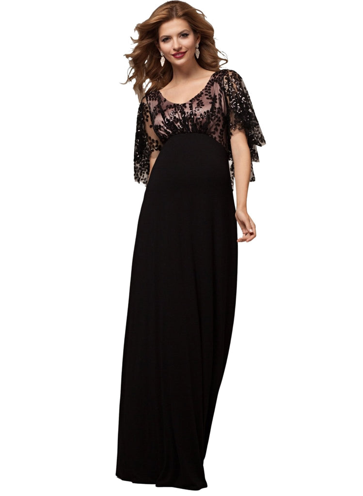 The dazzling sequin cape simply sparkles under the Christmas lights while the gently fitted bodice is softly gathered at the front to fit and flatter at every stage of pregnancy.