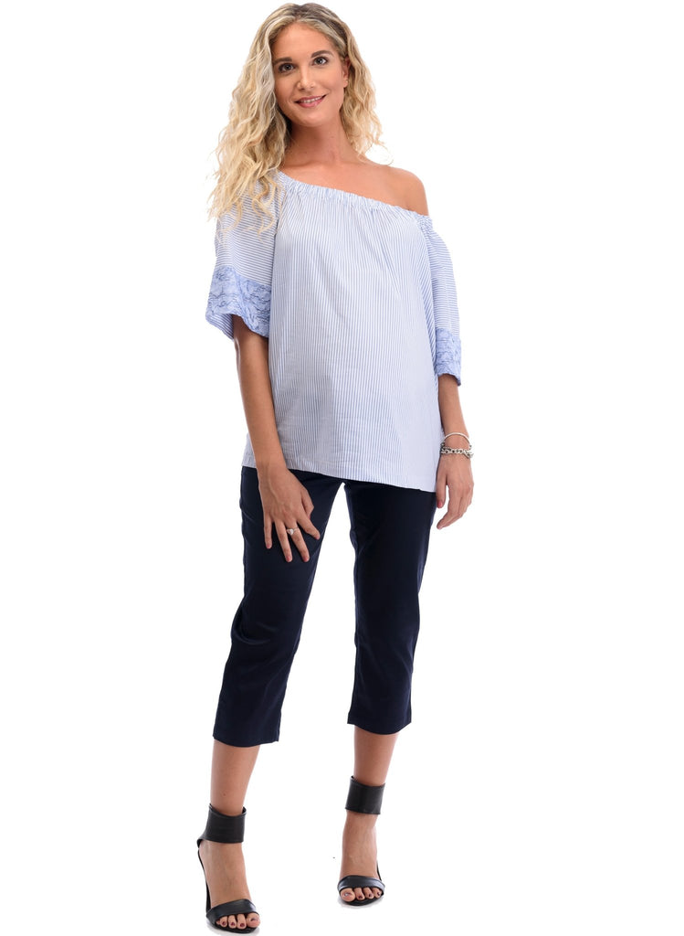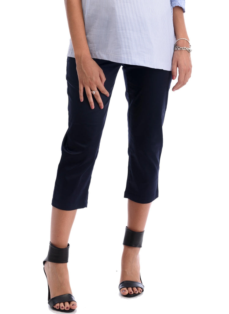 This over the belly navy relaxed legged Capri is made of soft and stretchy modal cotton to give you the ultimate comfort you are looking for throughout your pregnancy.