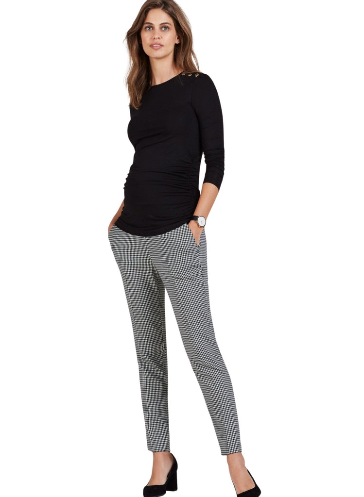 Making 9-5 workday polish easy during your pregnancy. Crafted in a bi-stretch fabric to accommodate growing curves and with a jersey under the bump waistband, they’re designed for the most comfortable of fits.