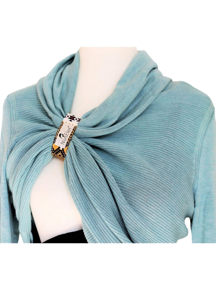 NursElet® fastens your shirt up for easy hands-free nursing and pumping. When not in use, wear as a stylish reminder of which side you last breastfed on.