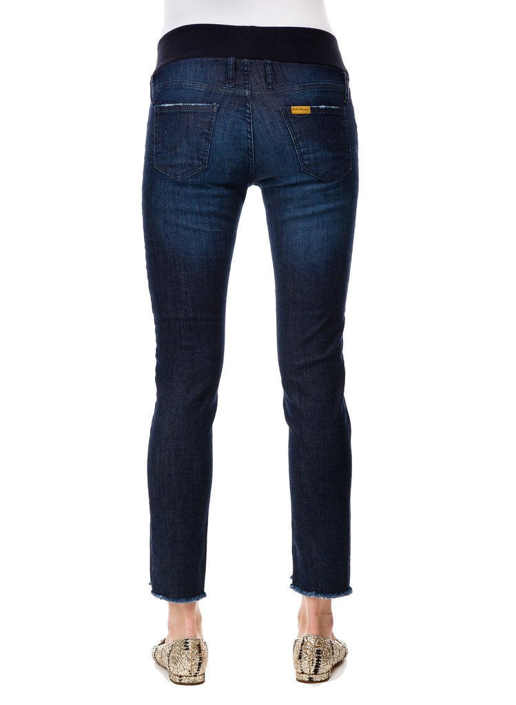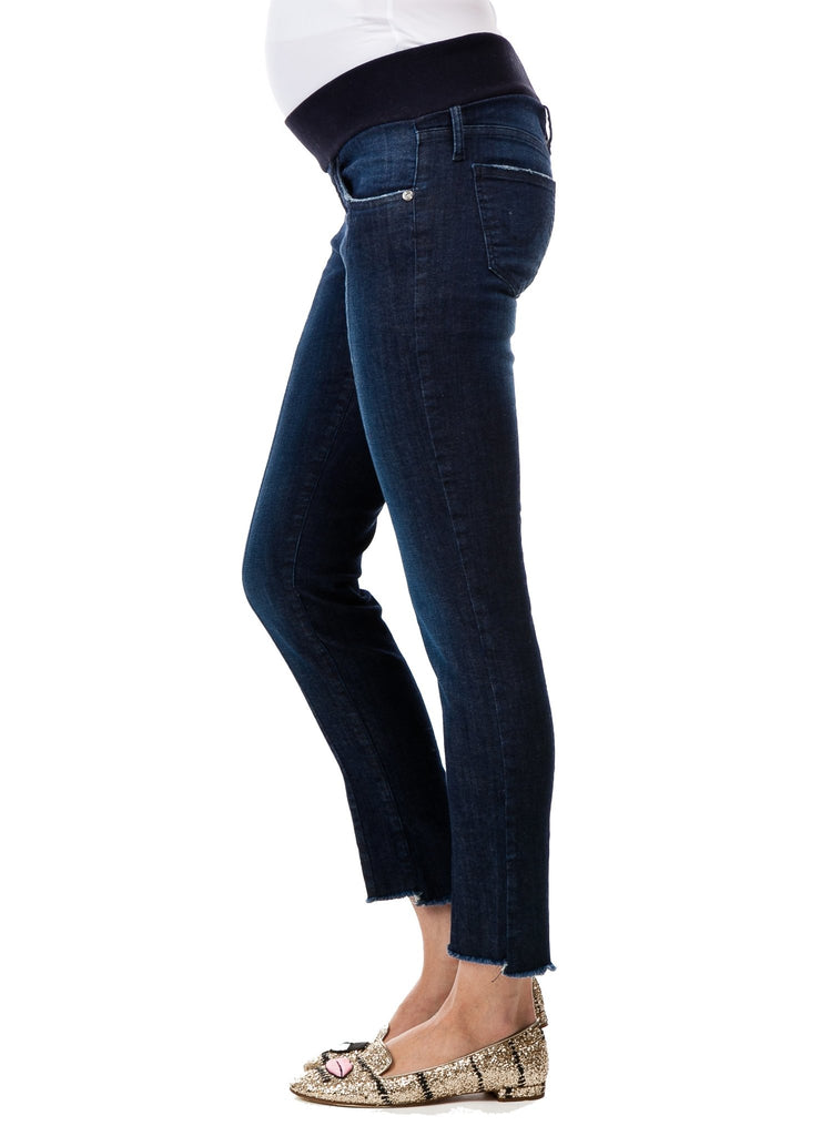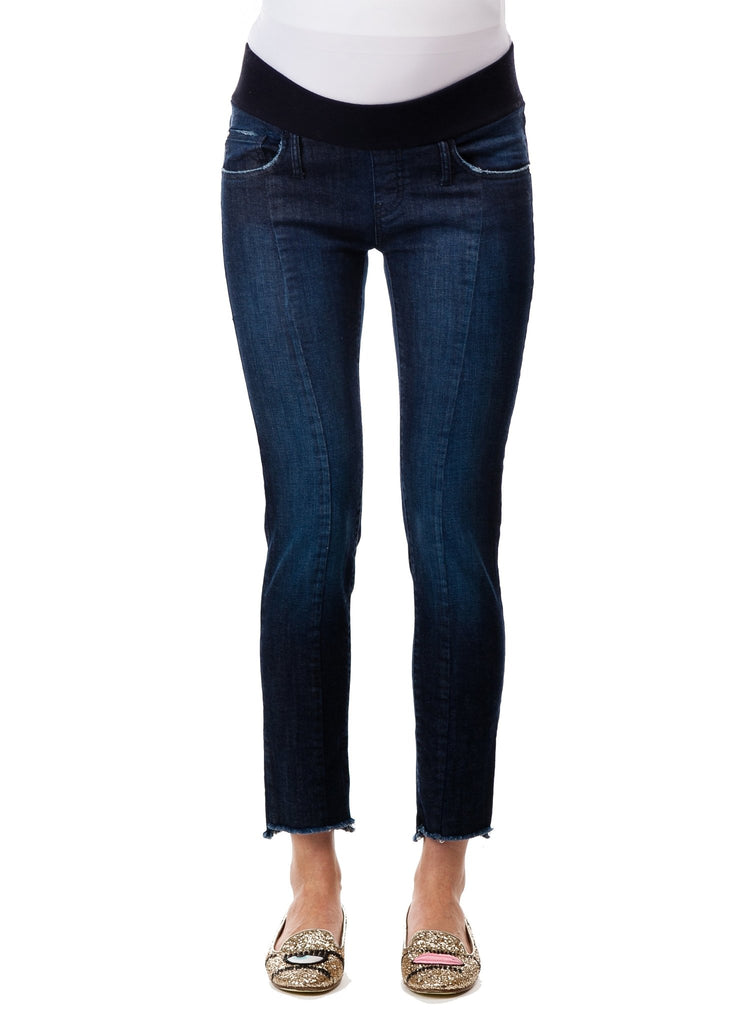 Straight leg jeans with reconstructed frayed edge and front seam. Belly friendly waistband, that guarantees a perfect fit through all stages of pregnancy and beyond.