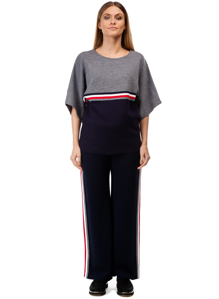 Sport long knitted sweater with elbow length angel sleeve and round collar. Relaxed fit which gives freedom of moviment.Sport wide knitted trousers with a narrow elastic band around the waist. Relaxed fit which gives freedom of moviment.