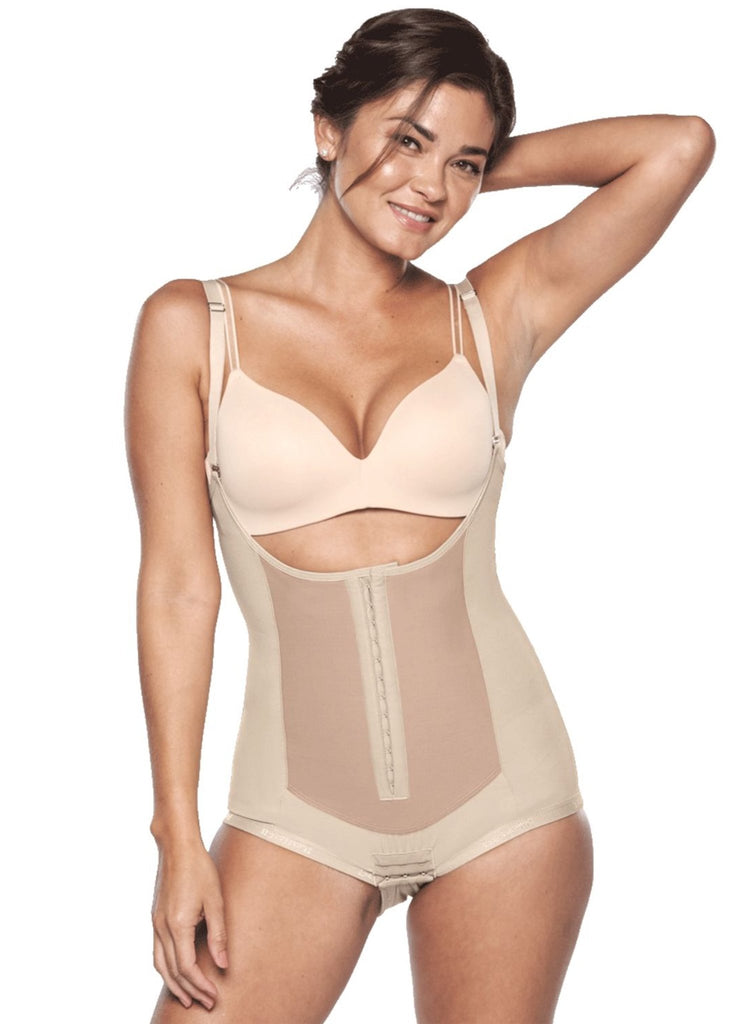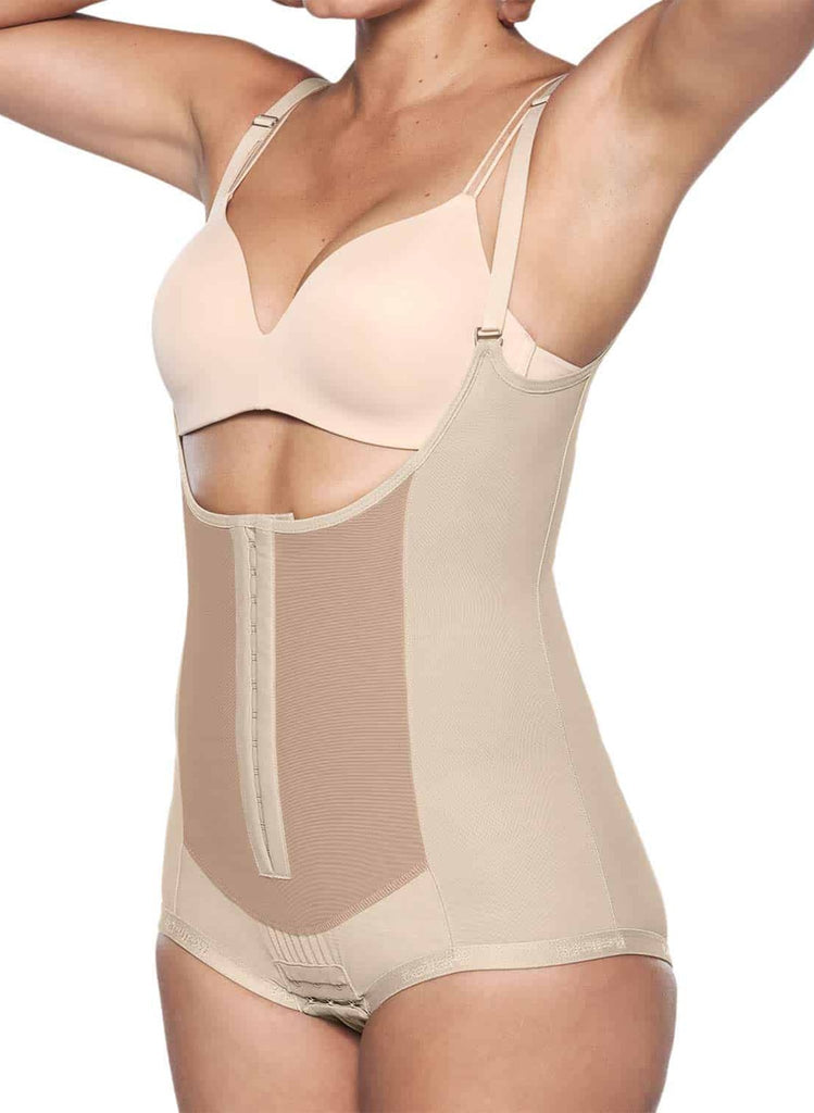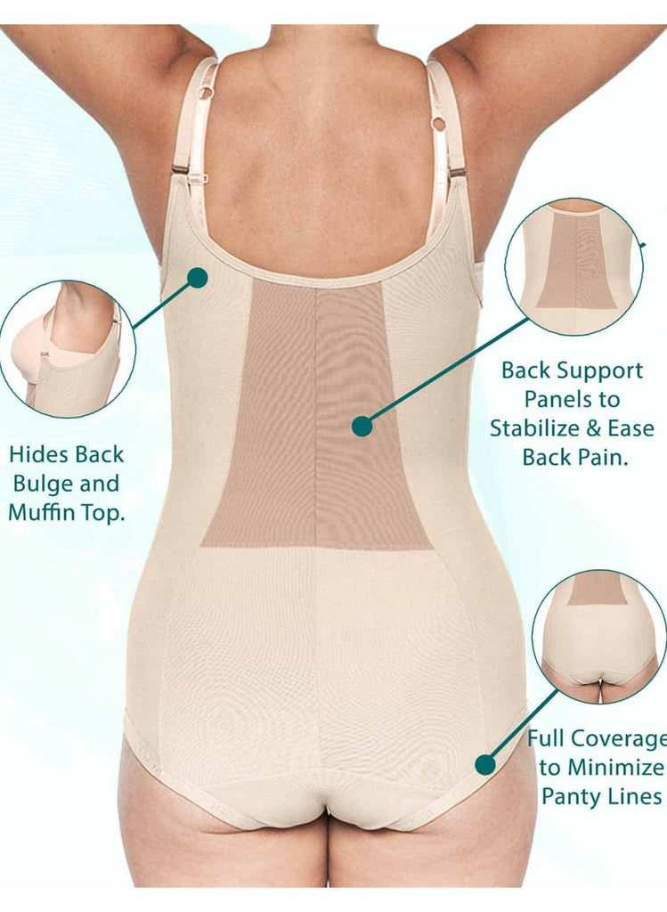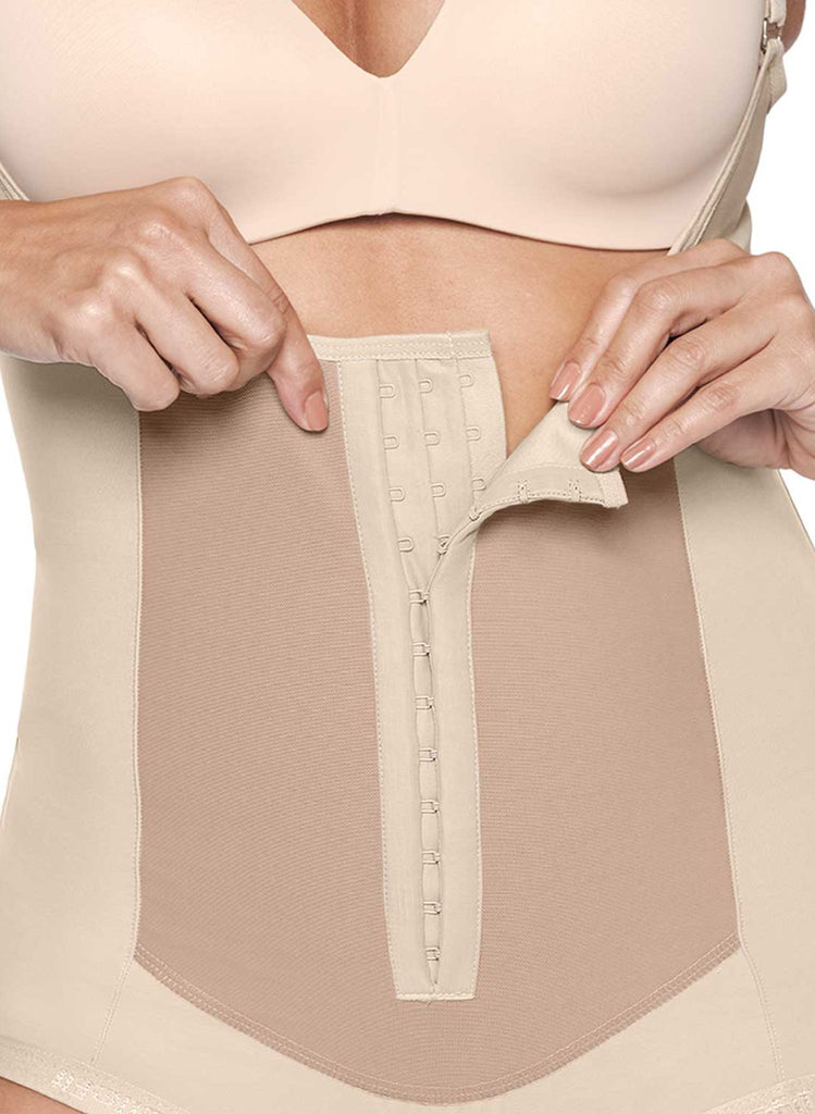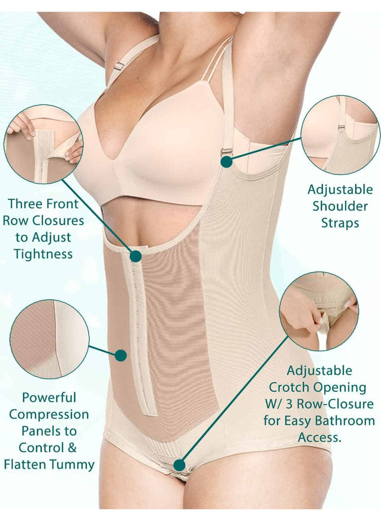 With its adjustable shoulder straps and three front-row closures, keeping things under wraps while recovering requires no extra effort. The bodysuit smooths and shapes naturally while protecting your incision with its medical-grade material.