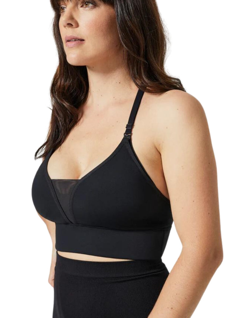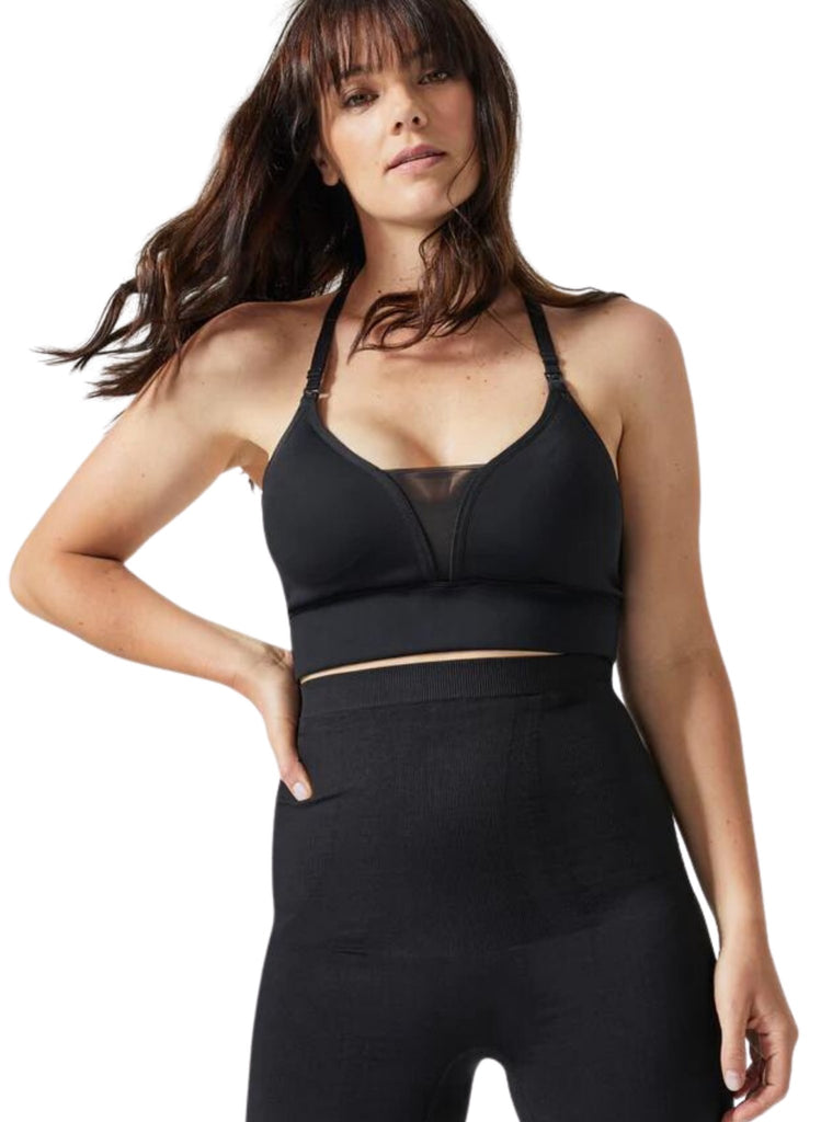 A sporty solution for fluctuating postpartum bustiness, this Racerback Nursing Bra offers clip-down construction for convenient, one-handed feedings.Delivering serious support for bust sizes A-D, this everyday staple is lined with soft, removable cups for a smooth silhouette. Engineered with a wide, clasp-less band and airy spacer fabric with mesh lining, three-way adjustable straps ensure a custom fit for mamas of all shapes and sizes.