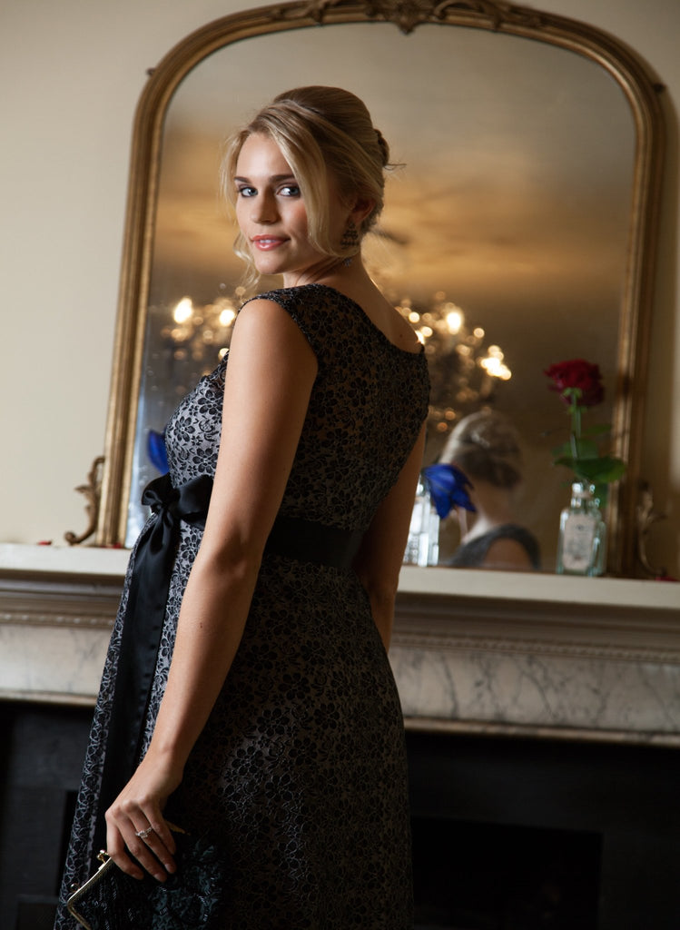 Emphasize the drama of the design with something sparkly at your wrist and neckline, a fuss-free up-do and prepare to shine.