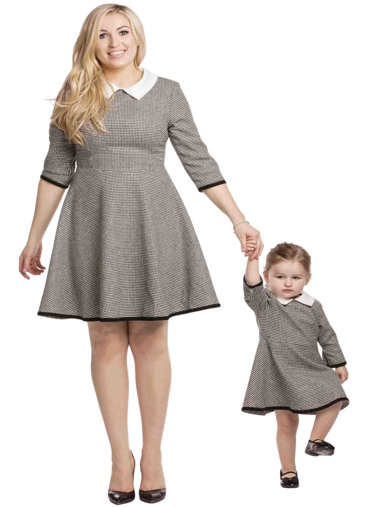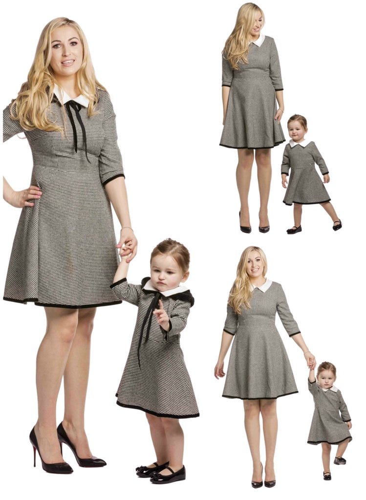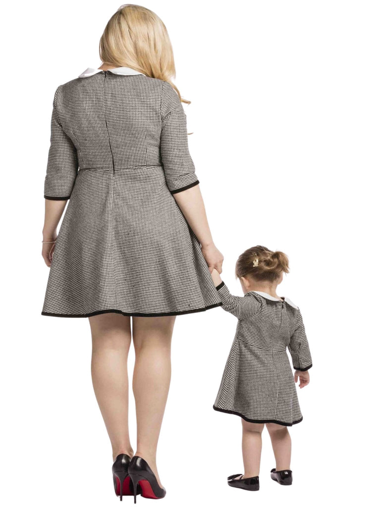 This fab A-line dress maintains a timeless and polished look in jacquard houndstooth checks. It comes with faux fur collar detail, can be worn with or without.