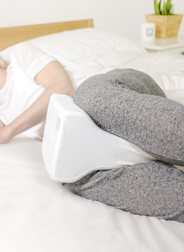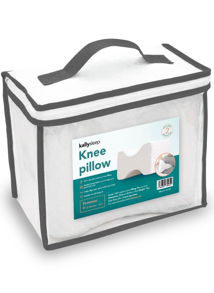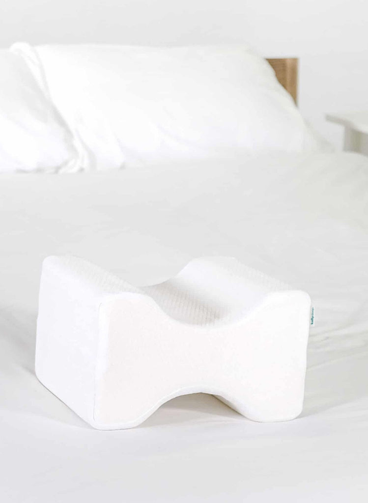 The Kally Knee Pillow improves the alignment of your spine while you sleep, providing you with a better quality of sleep. Ergonomically designed, the knee pillow fits comfortably between your knees and provides maximum support and comfort at night that helps relieve pain and pressure on the lower back Contoured design keeps your legs, hip and spine in ideal alignment while sleeping and improves circulation Made from high-density memory foam, the hourglass-shaped pillow offers firm support without sinking or losing shape.