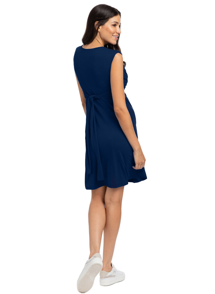 Maternity and nursing dress made of soft stretch jersey. The knot and back tie details flatter the silhouette through the various stages of pregnancy. The bodice features a slit concealed by pleating, allowing for comfortable breastfeeding.