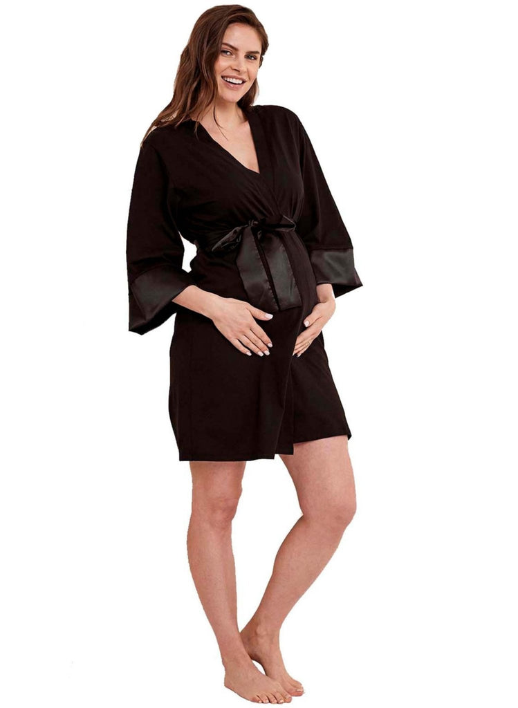Sweet dreams are welcome in this flattering, supportive nursing chemise and robe. This luxuriously soft cotton nightie features an adorable pineapple lashes print. Our pretty kimono robe with satin details has ample coverage to wear when pregnant or nursing. Top off our Pineapple Dreams Nursing Nightie for a complete look. A comfy style to wear when pregnant and after baby.