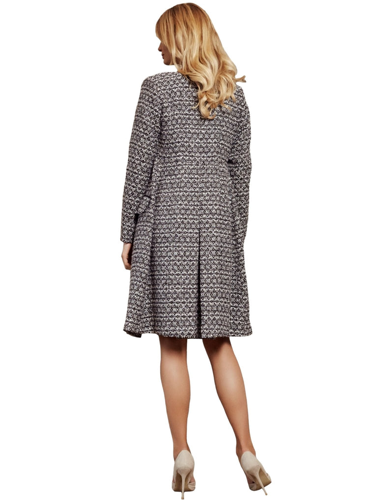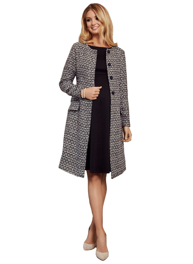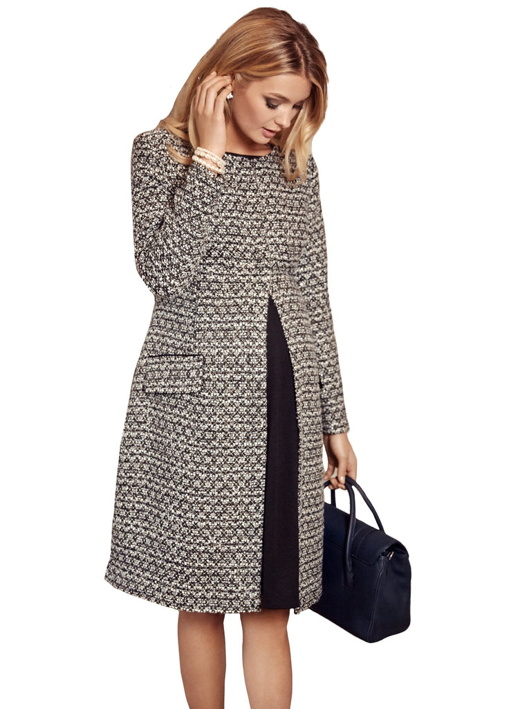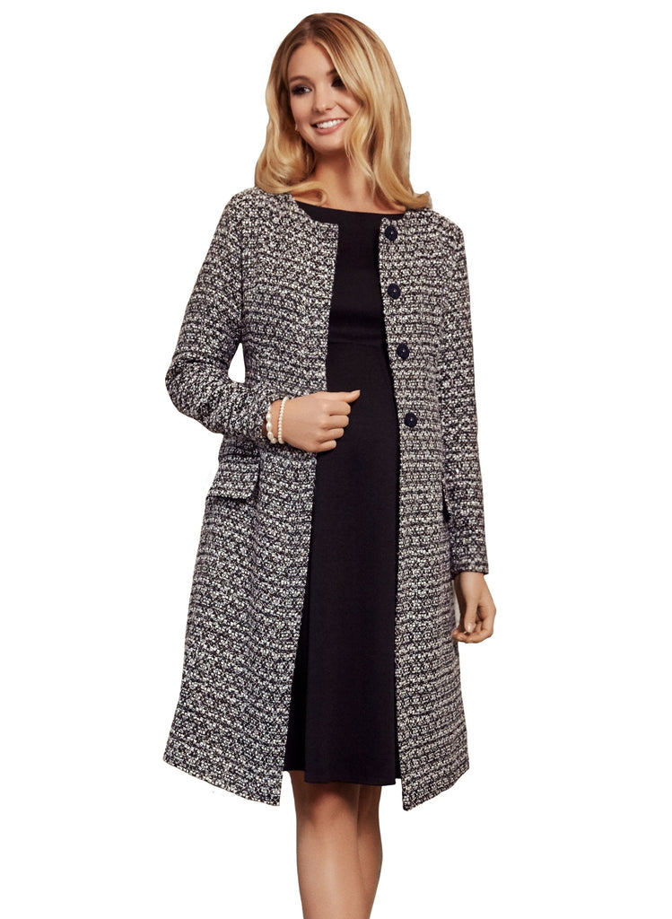 Cut a demure dash in this chic collarless coat that exudes easy style. Verity is uniquely glamorous, tailored for the perfect fit with bust darts and pleated back panels to slip over all of our maternity dresses.